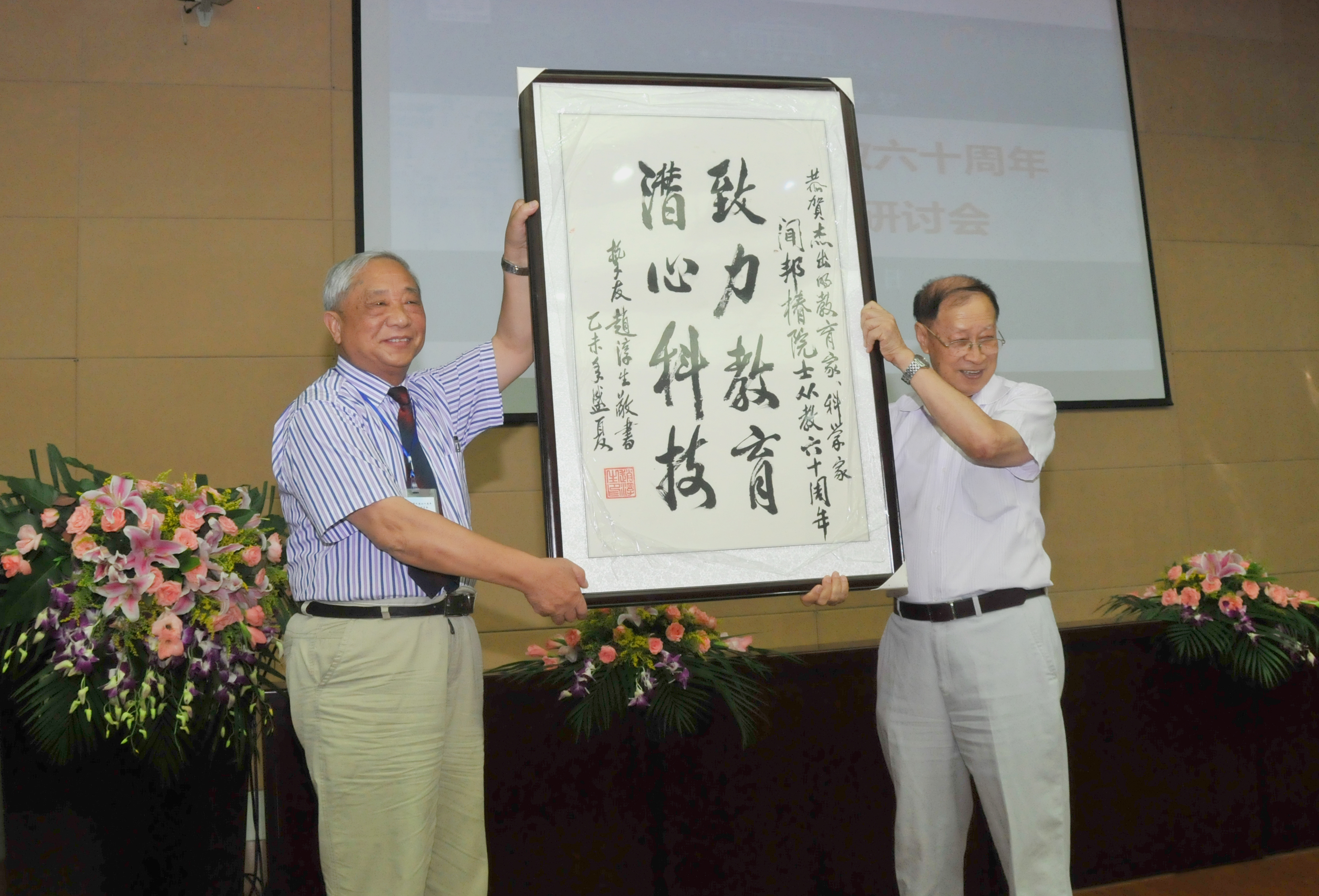 | “教则闻济于百徒,授则兴邦于天下”。8月15日上午,庆祝中国科学院院士闻邦椿从教60周年暨学术思想研讨会在东北大学主楼822室举行。与会者共同祝贺闻邦椿院士在科学研究、人才培养等方面取得的累累硕果,感谢闻邦椿院士执教六十载,为国家科学研究、教育事业,以及东北大学发展所作出的重要贡献,祝愿闻邦椿院士学术之树常青,生命之树常青。 中国科学院院士、南京航空航天大学教授赵淳生,中国科学院院士、沈阳飞机设计研究所研究员李天,中国科学院院士、清华大学教授雒建斌,东北大学校长赵继,中国机械工程学会副理事长兼秘书长张彦敏,中国振动工程学会副理事长兼秘书长、南京航空航天大学教授陈国平,辽宁省教育厅副厅长孙华林,辽宁省委组织部处长纪术宣,中国科学院沈阳分院副院长马越红,辽宁省科学技术委员会副主席孙丹,吉林大学国家重点实验室主任韩志武,上海交通大学国家重点实验室主任胡洁,辽宁省创新产业学会副理事长丁立义,兄弟院校机械学院院长,中小学校校长,东北大学各相关部门负责人、以及《光明日报》、《辽宁日报》、辽宁电视台等新闻媒体记者出席了会议。会议由东北大学机械学院党委书记刘建军主持。 赵继代表学校为闻邦椿院士从教60周年送上诚挚的祝福并致辞。赵继指出,闻院士是一位闻名遐迩的工程科学家,开创了振动利用工程学科,带领团队开拓了现代成功学方法论及科技创新等6个学术方向;闻院士是一位桃李满园的教育家,培养了硕士、博士、博士后200余人,为数以千计的本科生授课,其弟子在祖国的各行各业发挥着重要作用;闻院士是一位充满智慧的思想家,善于用科学的世界观、方法论指导人生,善于在体悟中总结和提炼哲学观点。赵继表示,闻院士从教60年,是其奋斗人生最华美的诗篇,体现的是名家熠彩,大家风范,其德如风、其功如山,并祝愿闻院士学术生命长春,家庭幸福美满。 中国科学院院士、南京航空航天大学教授赵淳生,中国科学院院士、沈阳飞机设计研究所研究员李天,中国科学院院士、清华大学教授雒建斌等与会嘉宾先后作了热情洋溢地讲话,纷纷表达了对闻邦椿院士为人、为师、为学的崇高敬意和诚挚祝福。大连理工大学程耿东院士等闻邦椿院士的挚友也发来贺电,表达对闻邦椿的敬仰之情,祝愿闻老健康长寿、事业常青。 闻邦椿院士虽已85岁高龄,但依然精神矍铄,思维活跃。闻邦椿院士首先对出席研讨会的各界领导、嘉宾和弟子们表示诚挚的感谢。闻邦椿表示,要想搞好教育、科研及相关工作,应努力学习现代成功学,牢固掌握实用科学方法论的体系和规则,自己60年教学和科研实践所取得的成绩正是在实用科学方法论的指导下完成的。闻邦椿希望,未来能在更广的范围内开展实用科学方法论或现代成功学方法论的学习,为东北老工业基地振兴,为中华民族的伟大复兴和中国梦的实现贡献力量。 大会还举行了闻邦椿院士方法论系列著作出版发布会。 |