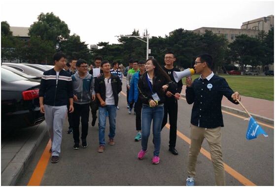 | 9月12日清晨,天边的云霞刚刚被染红,东北大学主楼前的喷泉已迫不及待地向空中喷涌。“迎新”的氛围从绿树掩映的甬道延伸至校园各个角落。机械学院15级新生三三两两向知行广场的新生报到处进发,在这里,一场由机械学院学生会精心准备的同学游校园活动正蓄势待发。