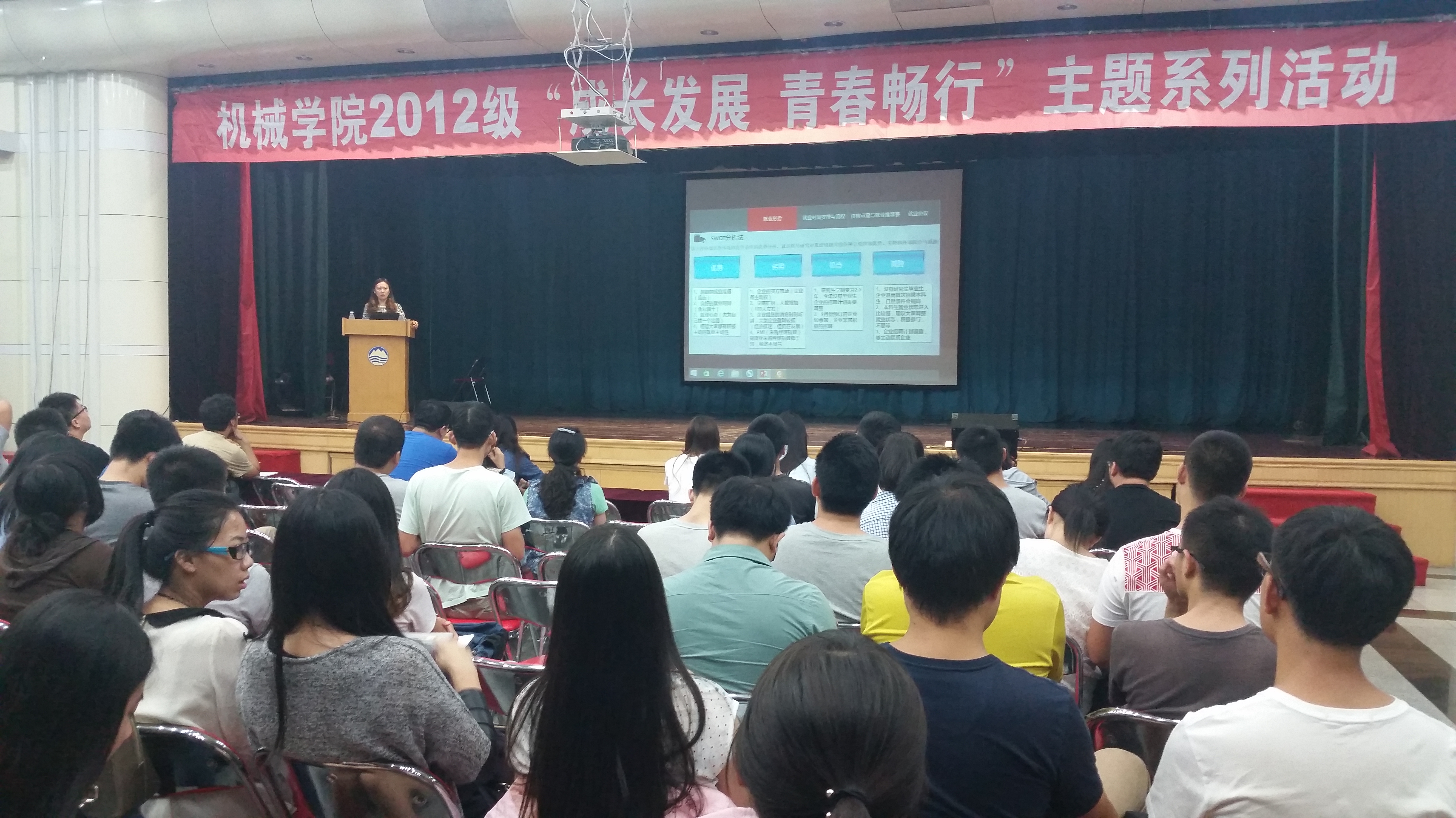 ![]() 2015年9月15日中午12点30分,机械学院2012级“成长发展 青春畅行”主题系列活动之“就业动员会”在大学生活动中心多功能厅成功召开。辅导员张孟新老师主要针对就业形势、毕业生档案派遣、就业生资格审查、推荐表填写以及相关后续工作做了具体说明,会议现场的同学们不仅态度热情,而且听讲十分认真,并积极提出问题,进行互动交流。张老师详细地介绍了毕业年级各项工作的大体时间安排及学校就业信息的填写和获取途径,提醒大家注意各种容易出错事项,督促大家抓紧时间合理地安排自己大四生活,散会后仍与同学们进行沟通指导。希望已经开始大四生活的同学们能有意义地度过大学生涯的最后一年,未来有更好的发展。 |