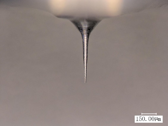 ※直径20微米,长径比为100的金刚石磨具。