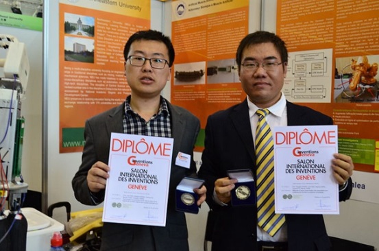 | 日内瓦国际发明展于2016年4月13日至17日举行。机械学院机械电子研究所郝丽娜教授和程红太副教授主持的智能机器人课题组有两项发明参展,经过展览、宣讲、洽谈、答辩等环节,最终获得两项银奖。参展的两个项目分属服务机器人和工业机器人领域。 第一项参展发明的项目旨在解决服务机器人设计中的轻量、柔顺、安全等问题。现存的齿轮、液压等传统刚性驱动器具有结构复杂、运动灵活性差、功率重量比低等技术问题,限制了其在康复医疗和仿生机器人等领域的应用。参展发明针对仿生结构、智能材料、驱动一体化的人工肌肉仿生驱动器,提供了三种人工肌肉的制备工艺、针对其强非线性的驱动控制方法和系统实现。人工肌肉包括离子交换聚合体金属材料(IPMC)、气动肌肉、鱼线-形状记忆合金等。针对人工肌肉动力学的强非线性,设计了自适应逆控制和无模型自适应等控制器。研制了多种结构形式的仿生驱动器、夹持器、仿人手臂和助力手臂等,可应用于仿人机器人、义肢、外骨骼等服务机器人。
