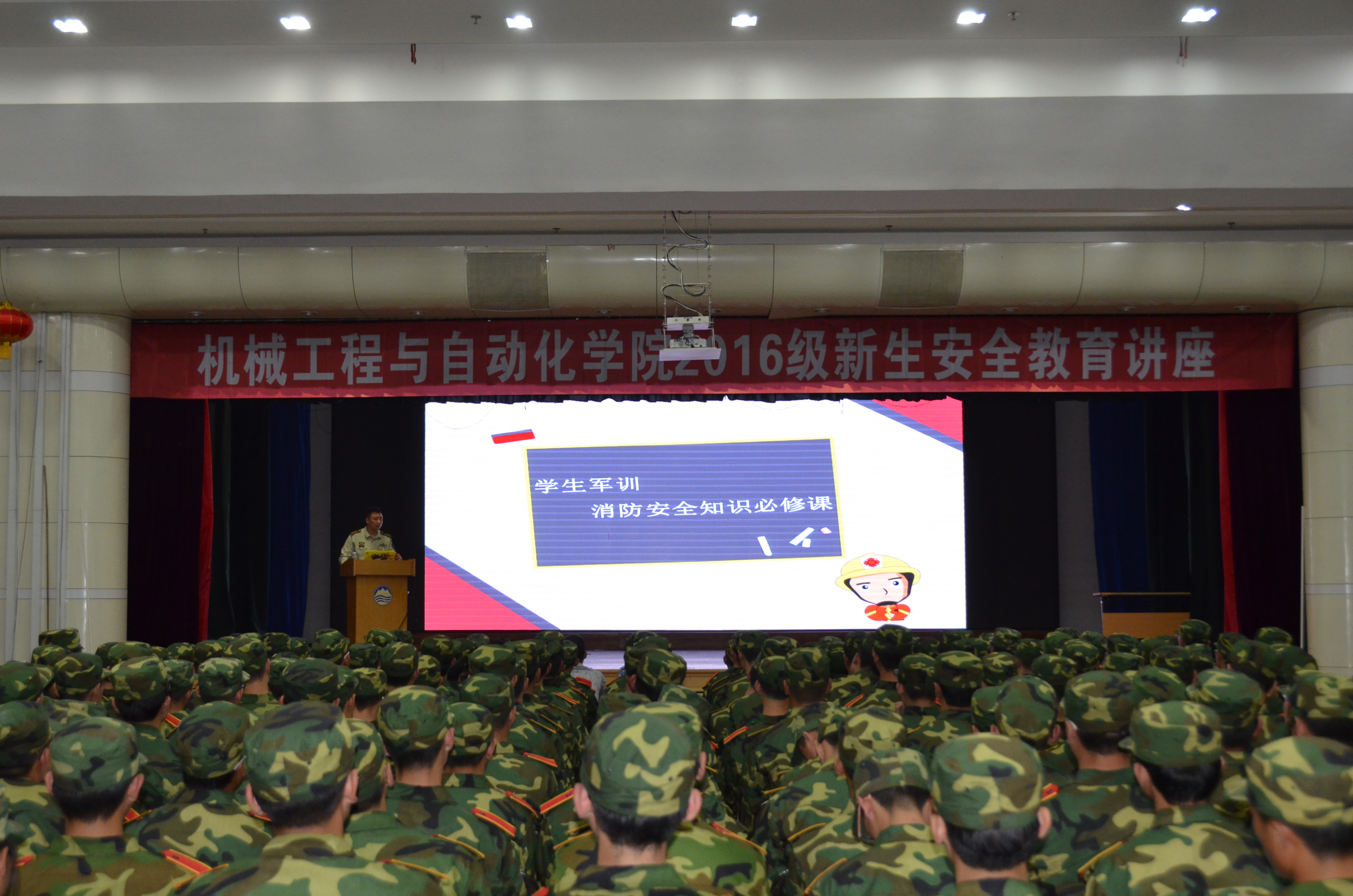 9月17日晚,学校公安处特邀沈阳市和平区消防大队副大队长阚大伟在大学生活动中心一楼多功能厅为机械工程与自动化学院2016级新生作消防安全知识讲座。校公安处副处长刘勇、消防科科长徐兴涛、机械工程与自动化学院党委副书记兼副院长田畅、2016级新生辅导员和2016级全体新生参与了讲座。