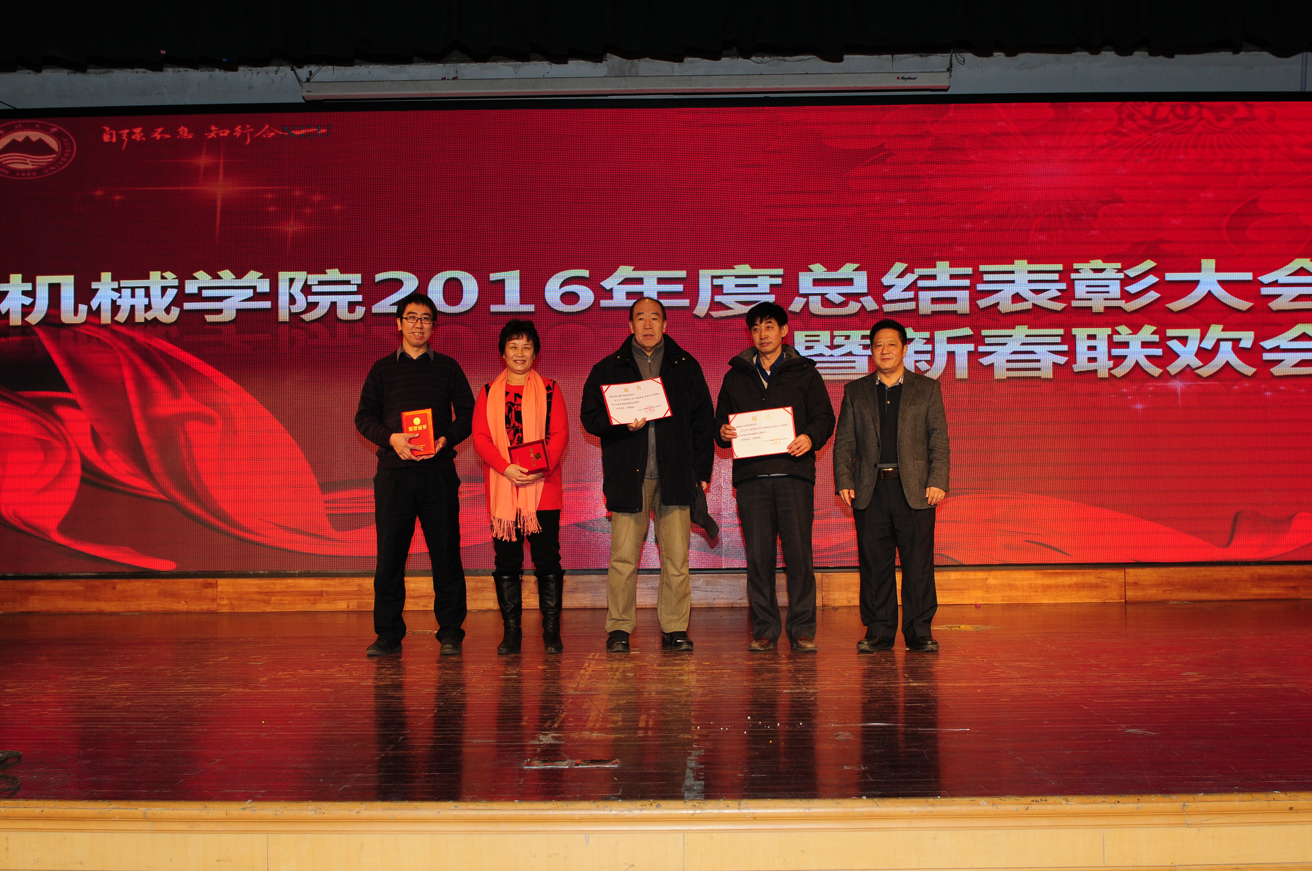 1月13日,机械学院2016年度总结表彰大会暨2017年新春联欢会在大学生活动中心隆重举行。赵继校长受邀参会,与学院教师齐聚一堂,共话家事。会议由学院党委副书记田畅主持。 在年度总结表彰大会上,赵继校长致辞。他首先向辛勤教学、努力工作的全体教职工表示衷心的感谢,并特别感谢闻邦椿院士虽从教60余年,仍作为学院学术带头人辛勤耕耘,发挥作用,同时感谢巩院长、刘书记为首的领导班子发挥他们的聪明才智,卓有成效的工作,推进了学院的建设和发展。 赵校长指出,2016年是机械学院发展重要标志的一年,学院的各项工作取得了新的进展。这标志着学院提高了教学和人才培养质量,提升了学科建设水平和科研能力,学院党委在保证学院建设发展方面取得了丰硕的成果,学院整体建设实现了相对的快速发展。 赵校长希望,未来的机械学院能利用东北老工业基地的天然地理优势,在学院建设和发展上取得更大的进步。在学校服务沈阳“双创走廊”建设的过程中,发挥学院优势,贡献一份力量,实现市、校、院“三赢”的局面,在各项工作中再上新台阶,再创新辉煌。随后,赵校长向全院师生致以新春的问候和祝福。 巩亚东院长在大会上致辞,他首先肯定了学院一年来在各方面工作的顺利推进,且成效显著。并表示成绩的取得是在学校的领导和具体工作下,全体师生共同努力奋斗下取得的。但同时必须清楚的认识到,在学校的建设和发展过程中,学院在人才队伍建设、学科方向凝练、激发发展活力、教学再造等方面仍存在相当大的上升空间。 巩院长希望,以学校推进治理体系和能力现代化为推动,以学校深化综合改革为契机,抓好学院的内涵建设,推进学院的综合改革工作,强化人才引进与培养,通过学院资源配置与引导,凝练符合国家战略的学科方向,推进多元化的考核和基层学术组织机制的改革,依托两化融合,重构培养方案、教学模式,实现机械工程教育的再造,取得科研水平、数量、科研经费总量的有所提升。 随后,学院党政领导班子全体成员给全院教师拜年。 接着,刘建军书记宣布“关于表彰2016年度做出突出贡献集体和个人的决定”、“关于表彰2016年度先进班导师的决定”。赵继校长、闻邦椿院士、巩亚东院长、刘建军书记为受表彰的集体和个人颁奖。 最后,全体教师欣赏了学院自编自导的精彩联欢节目,现场一片喜庆,气氛激情热烈。学院教师大显身手,歌曲独唱、大合唱、群舞等节目精彩纷呈,高潮迭起,给观众带来了一场视觉和听觉的盛宴,博得了阵阵热烈的掌声和笑声,充分展示学院教职工的良好精神风貌。联欢会还穿插了抽奖活动,更是把全场的氛围带到了最高潮。 联欢会在教师的恋恋不舍中圆满结束。学院教师在观赏精彩节目、感受快乐的同时,更加坚定了为学院的美好明天共同奋斗的信念,坚信学院的明天会更好。 | (责任编辑:高玉武) |