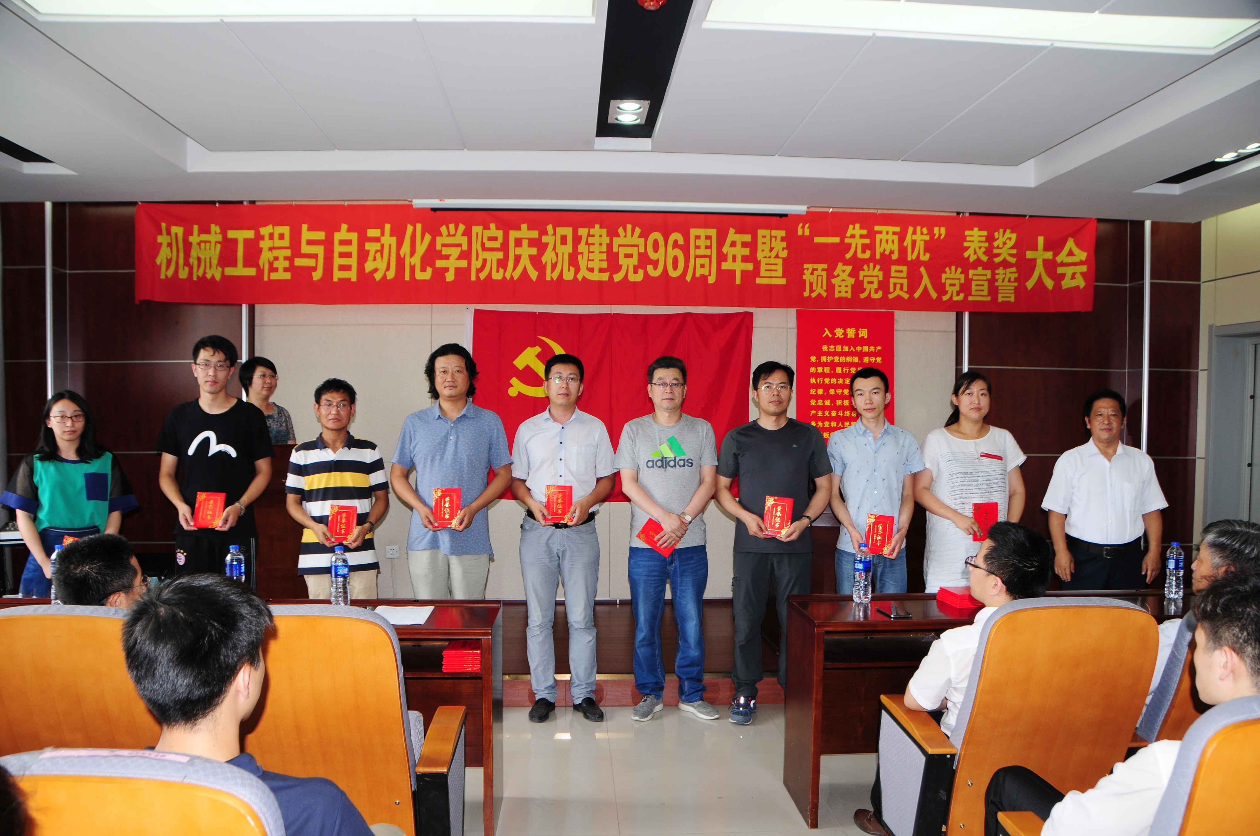 | 2017年6月30日中午,在机械实验楼513,机械工程与自动化学院召开了“庆祝建党96周年暨‘一先两优’表奖与预备党员入党宣誓大会”。会议由学院党委副书记田畅同志主持。学院党委委员、班子成员、受表彰的集体代表和个人、学院全体预备党员参加了会议。校党委组织部姜玉原同志应邀出席了会议。 大会在庄严的国歌声中开幕。 首先,由学院党委委员、院长巩亚东同志宣读了学院党委《关于表彰2015-2017年度先进党支部,优秀共产党员,优秀党务工作者的决定》。随后,与会领导为获奖集体代表与个人颁发奖状。颁奖后,学院百余名预备党员在领誓人带领下一同面向党旗庄严宣誓。 接着,学院党委书记刘建军同志讲话,他首先对受到表彰的先进集体和个人及参加宣誓预备党员表示祝贺,并向出席会议的同志们及通过他们向全院各级党组织和600多名党员致以亲切的节日问候,然后指出学院将继续在校党委的领导下,深入贯彻落实“两学一做”学习教育常态化、制度化,全面推进从严治党,尊崇党章、遵守党规,不忘初心,直面问题,开拓进取、扎实苦干,努力为学院各项事业的开展而努力奋斗。! 最后,大会在雄壮的《国际歌》歌声中闭会。 ![]() ![]() (责任编辑:高玉武) |