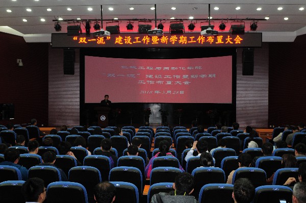| 3月28日下午,学院在科学馆建龙学术报告厅召开了“双一流”建设暨新学期工作布置大会。副院长艾国生主持会议,学院全体教工参加。 会上,巩亚东院长以“抓住双一流建设的战略机遇,推进机械学院建设快速发展”为题,在回顾学院2017年工作业绩的基础上,重点介绍了学校“双一流”建设目标,结合学院实际,进行分析对比,查找差距,奋起直追,并对2018年学院工作做出安排部署。要求全院教师充分认识加快推进学校综合改革和“双一流”建设的重要性、必要性、紧迫性,给自己定好位,保持良好积极的心态,融入学院发展之中,成就自己、贡献学院。 学院各分管副院长针对所负责的工作,分别详细做工作汇报及工作部署。 艾国生副院长从师资队伍现状、内涵建设、存在问题、工作展望以及安全工作方面对学院人才队伍建设和安全工作进行了部署和安排。于天彪副院长做了“双一流建设―人才培养目标”的报告,针对本科生人才培养做详细工作介绍和安排。李鹤副院长对研究生培养、国际合作交流的主要工作做出安排和部署。孔祥伟副院长在巩亚东院长的汇报基础上,详细阐述“双一流” 科研项目有关情况。 最后,刘建军书记做总结发言。他要求全院教职工,要以学院的各项重点工作为中心 ,树立责任感、使命感,发挥主人翁意识,脚踏实地的开展教学、科研工作。要以老带新、以强带弱,骨干教师要发挥中坚力量,青年教师要加倍努力,提高认识,强化责任,全力以赴,做好工作,以实际行动为学院改革发展作贡献。 曲琳璐
