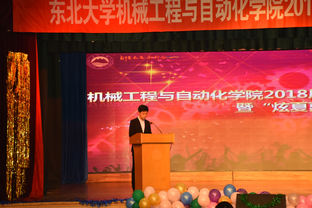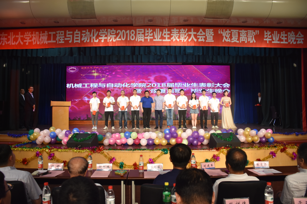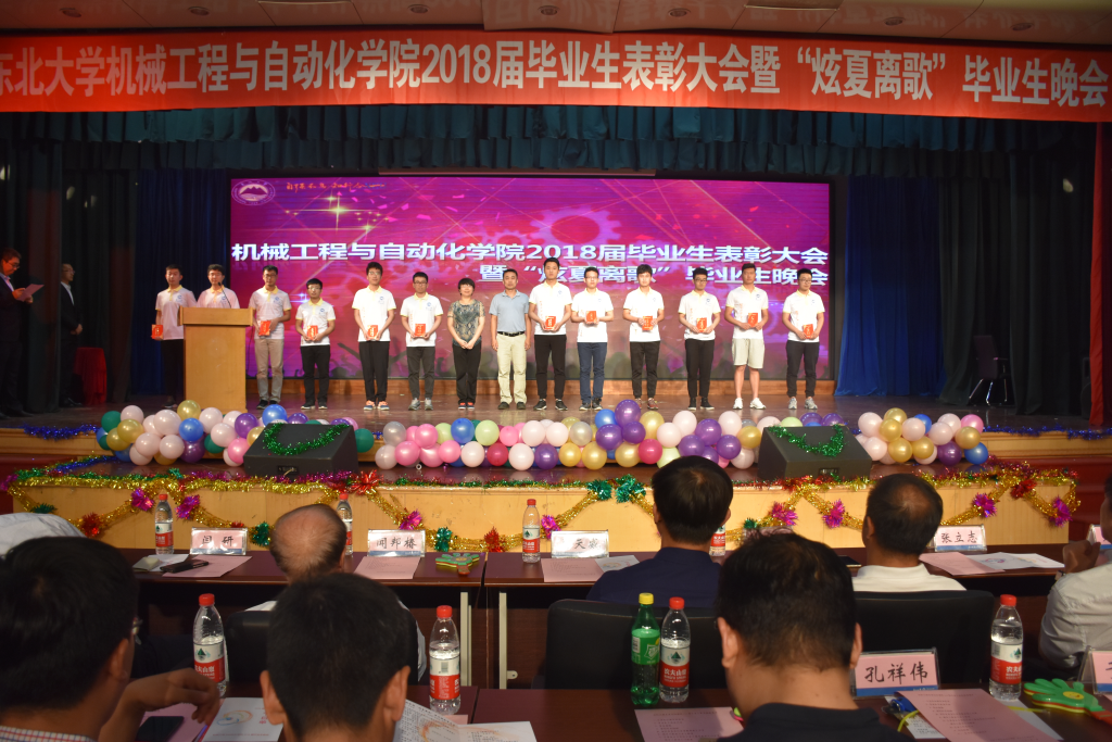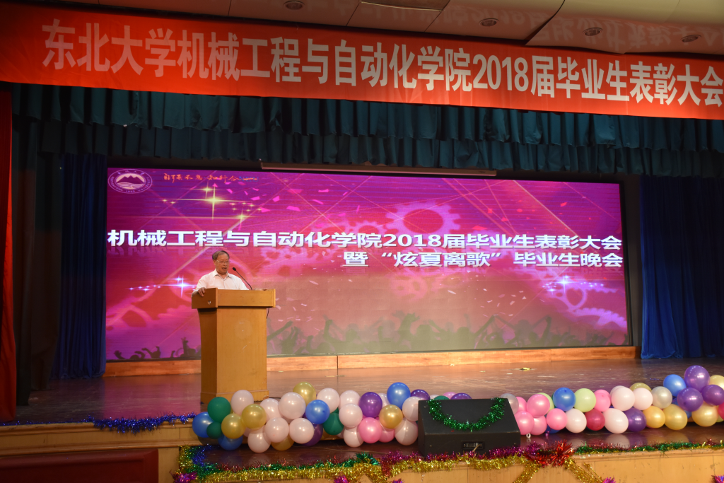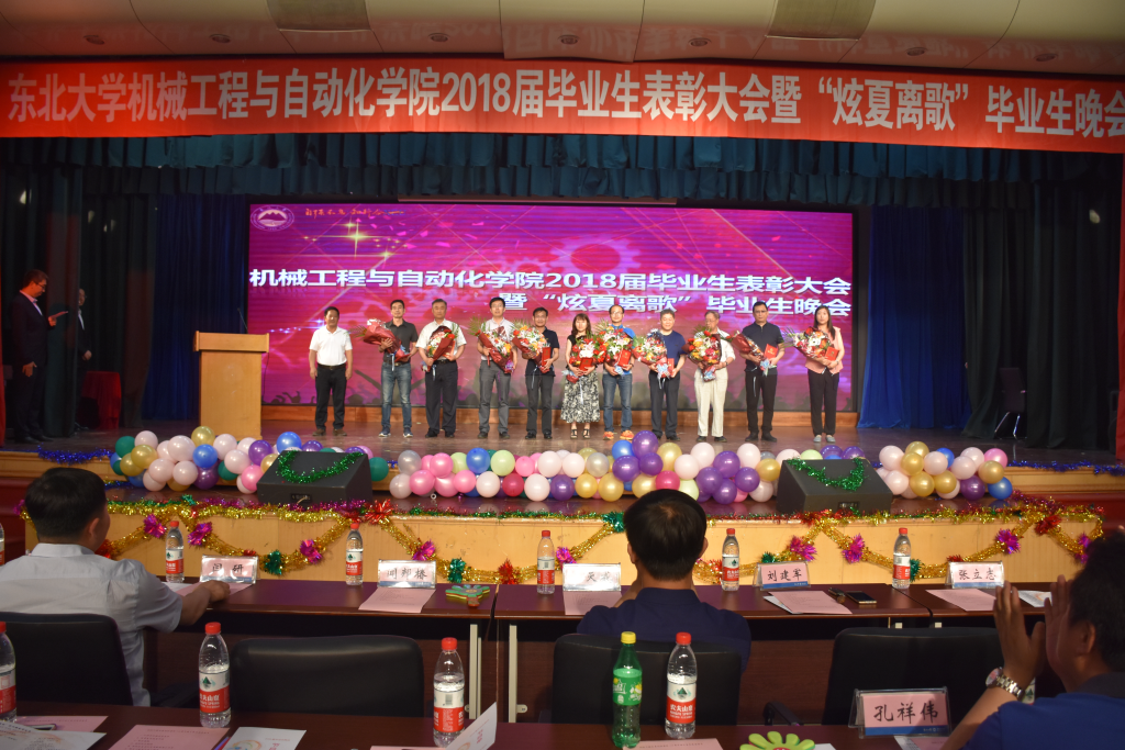 6月5日晚6:00,机械学院在大学生活动中心举办2018届毕业生表彰大会暨“炫夏离歌”毕业生晚会。中国科学院院士闻邦椿、学生工作处处长马天威、东北大学团委书记闫研、学生指导服务中心主任刘云飞、创新创业学院常务副院长张立志,机械工程与自动化学院院长巩亚东、党委书记刘建军,副院长孔祥伟、李鹤、党委副书记兼副院长田畅等校院领导、班导师、机械学院第十三届毕业生最喜爱的老师应邀出席活动。