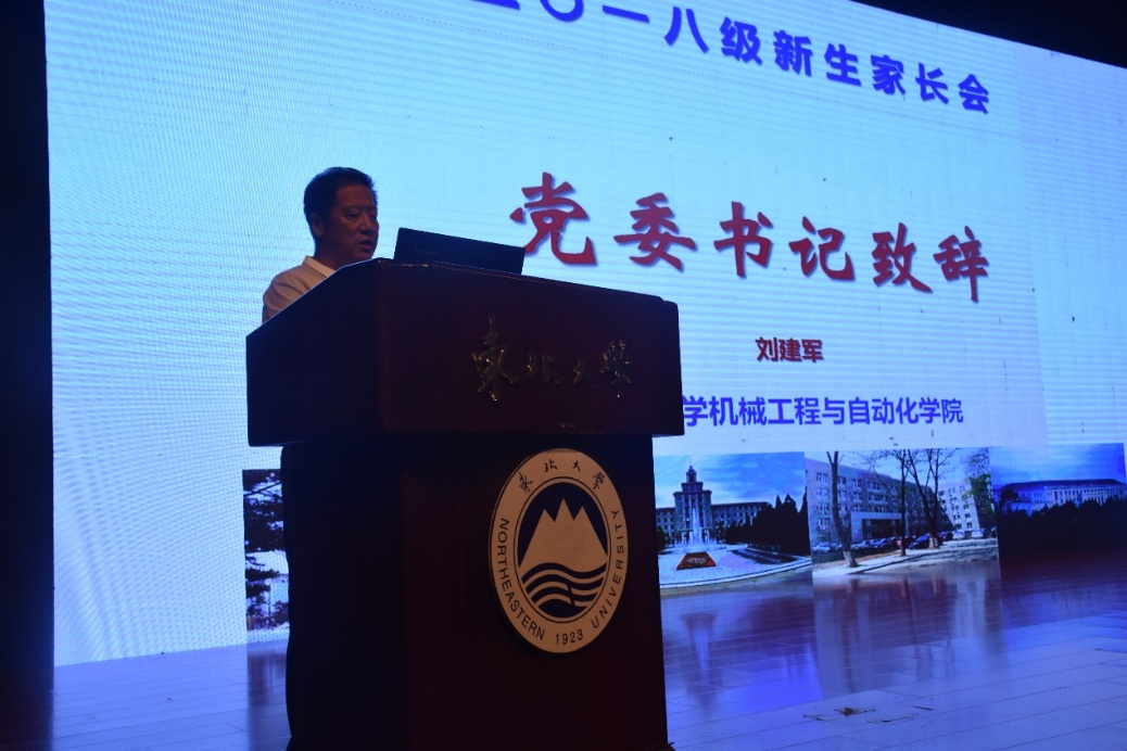 学院党委书记刘建军向考入东北大学机械学院的同学和家长表示祝贺,对选择机械学院的同学表示感谢。希望所有同学能够在四年的大学生活中努力拼搏、不断超越,在自己选择的道路上不断提升自己,不浪费自己美好的青春时光。