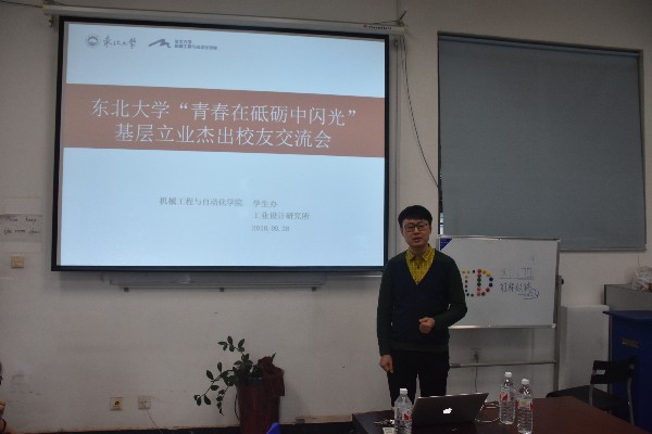 9月28日下午2点,机械工程与自动化学院在机电馆415举行东北大学“一五一十”思政文化育人一体化平台建设项目之“青春在砥砺中闪光”基层立业杰出校友交流会。东北大学校友,机械工程与自动化学院2008届工业设计专业本科生、2010届机械设计及理论专业研究生、现任美的集团热水器事业部净饮产品经理张进受邀来院进行交流,工业设计研究系副主任杨松、工业设计所部分教师及工业设计专业学生参加了本次交流会。