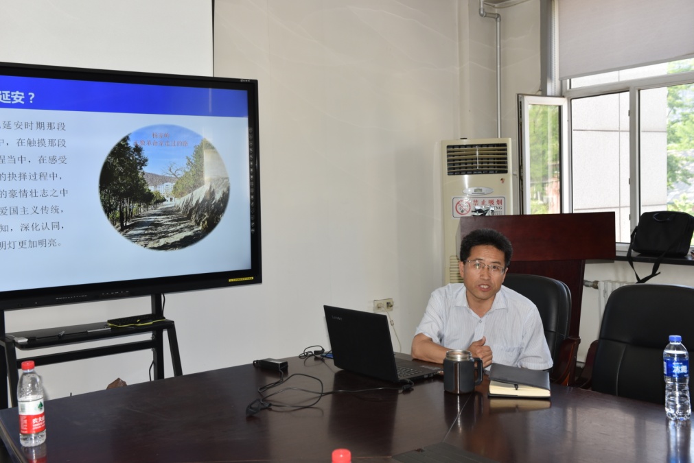 首先,艾国生副院长以大量的史实、图文并茂地做了题为“延安精神 永放光芒”的专题党课,从为什么去延安学习、延安为什么成为革命圣地、延安足迹、延安精神是什么、延安精神永放光芒等五个部分进行了深刻阐述。