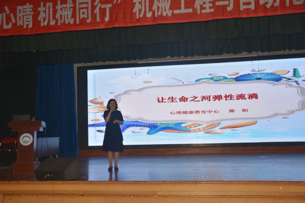 5月31日中午12:30,机械工程与自动化学院在大学生活动中心一楼多功能厅举行“春日心晴,机械同行”大学生心理健康教育专题讲座活动。学生指导服务中心心理健康教育中心主任、辽宁省高校心理健康教育研究会秘书长陈阳应邀为机械学院各年级400余名学生做题为《让生命之河弹性流淌》的专题讲座。机械学院党委副书记兼副院长田畅和学生工作办公室全体辅导员出席。