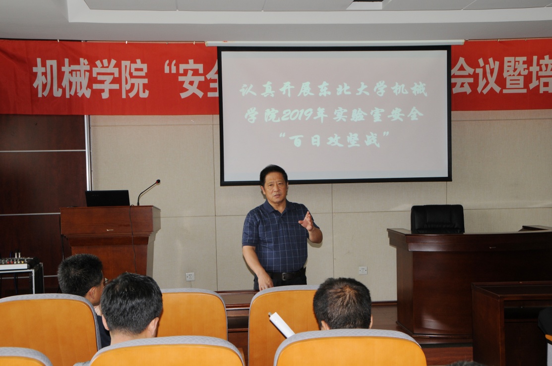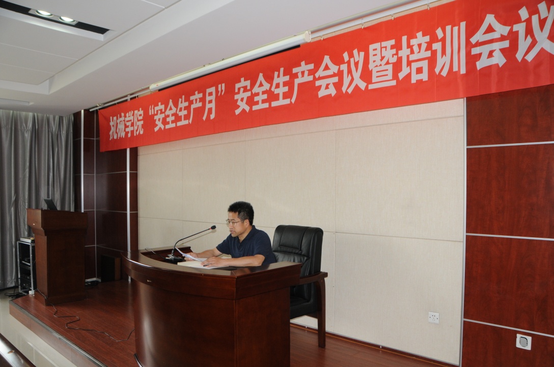 6月18日下午,机械学院召开2019年“安全生产月”安全生产会议暨实验室安全“百日攻坚战”动员大会,学院党委书记刘建军、各部门主要负责人、安全员、实验中心全体成员参加,会议由副院长艾国生主持。