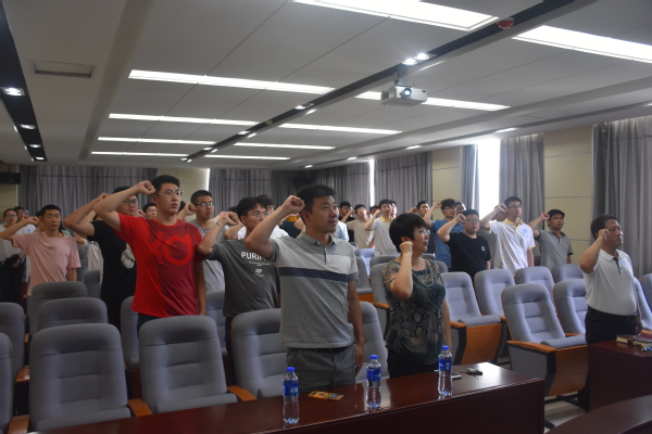 首先全体毕业生党员在党旗下庄严宣誓,重温入党誓词。