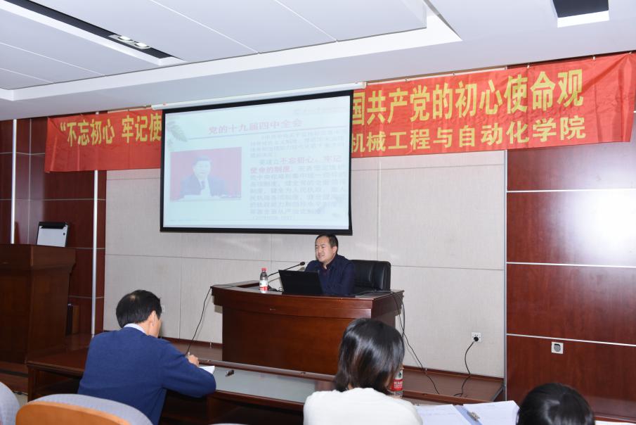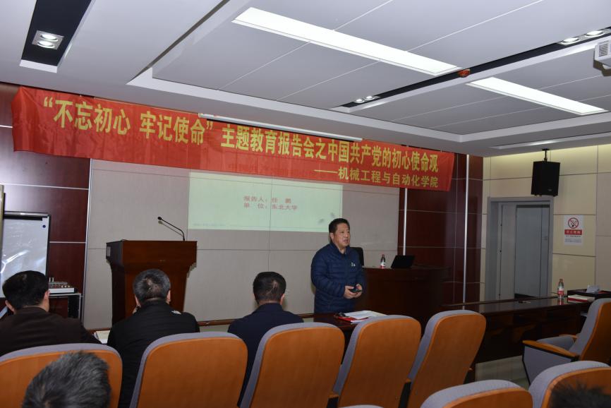 11月14日下午,机械工程与自动化学院邀请校“不忘初心、牢记使命”主题教育宣讲团代表任鹏教授在机械楼513报告厅为学院师生做题为“中国共产党的初心使命观”专题报告。学院教工党员及部分学生党员代表参加了报告,报告由刘建军书记主持。