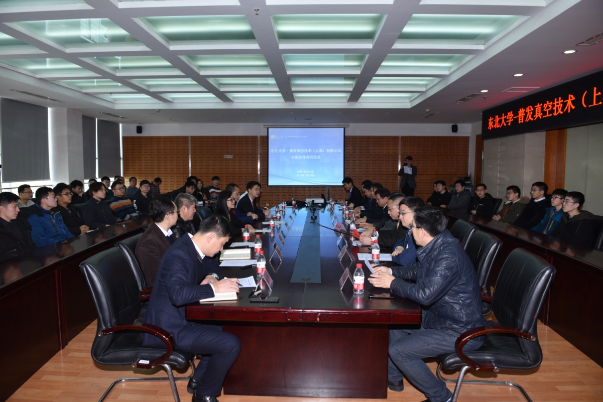 12月18日,东北大学与普发真空技术(上海)有限公司全面合作签约仪式在汉卿会堂308会议室举行。普发真空技术(上海)有限公司总经理郑洪、中国区人事经理兼亚洲区培训与发展主管钱萍,市场部经理方子祥,东北大学副校长孙雷,对外联络与合作处、机械工程与自动化学院相关负责同志、过程装备与控制工程专业师生代表50余人出席了签约仪式。
