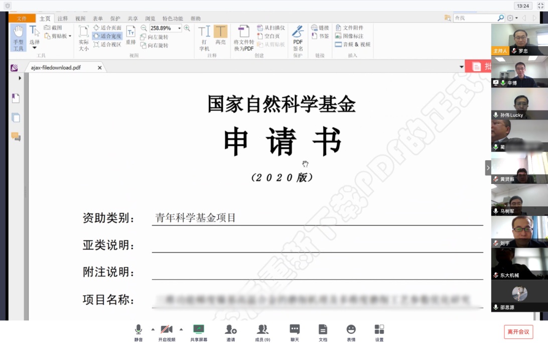 本次线上评审指导会议采用视频交流的新方式,旨在为学院基金申请人提出有针对性的改进意见,提高学院教师国家自然科学基金的申请质量,会议效果远超预期,教师收获颇丰!