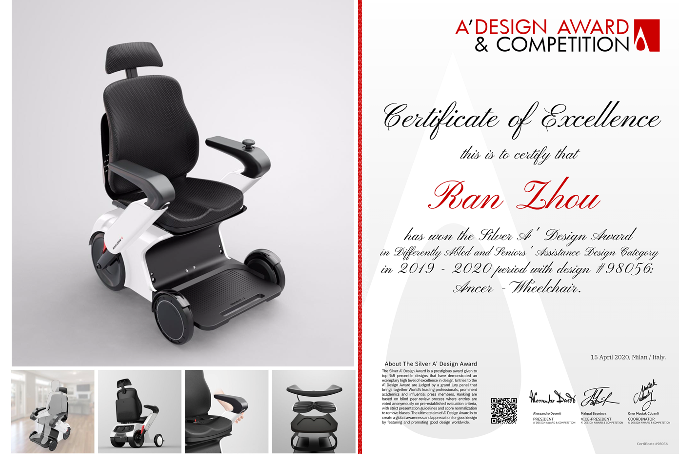 北京时间2020年4月29日,意大利A’Design Award设计大赛结果出炉,东北大学机械工程与自动化学院工业设计专业学生周然(指导老师:吕春梅)的作品《ANCER》获得了大赛银奖,也是我院工业设计专业学生首次获得国际设计大奖。