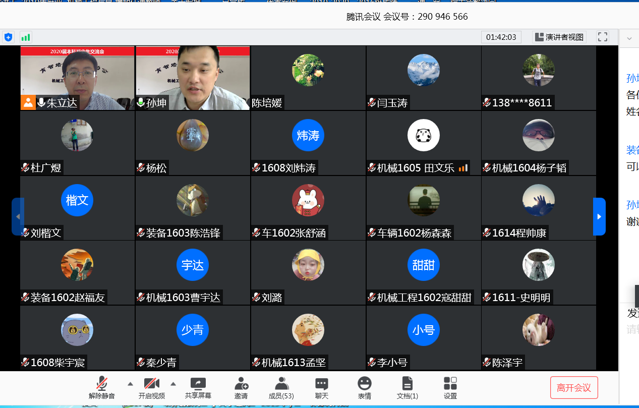 为进一步推动本科教学改革,响应各专业工程教育认证要求,深挖学院当前人才培养中存在的突出问题,6月10日上午,机械工程与自动化学院2020届本科毕业生交流会依托腾讯会议平台成功召开。学院党委书记刘建军、副院长朱立达、党委副书记兼副院长孙坤,机械工程系、智能制造工程系、车辆工程系、真空与过程装备系、工业设计系等五个系主任、副主任,学院教学办及学生办各位老师出席,18个班级、51名2020届本科毕业生代表全程参与,会议由朱立达主持。