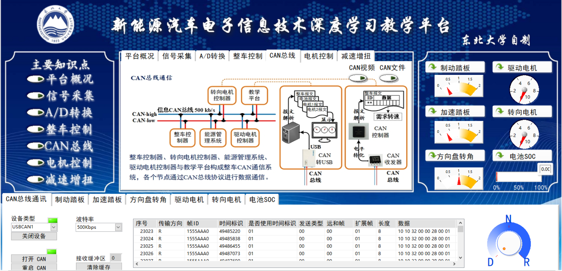 新能源汽车电子信息技术教学与科研平台:该平台基于硬件的输入输出和软件的在线监控,实现对新能源汽车电子信号的全流程监控,是教学、岗前培训和科研的理想平台。具有硬件控制直观化、电子信号转换与流向可视化、视频讲解各环节原理以及结合硬件和软件代码进行深度学习等特点。