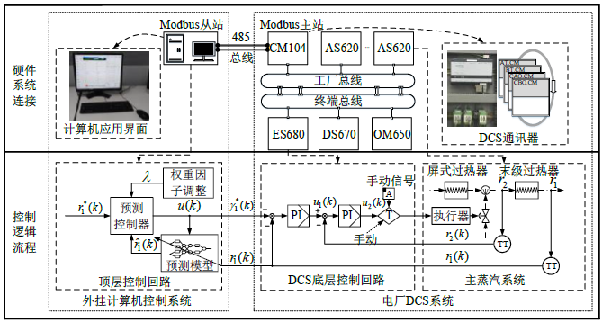 大型电厂燃烧优化控制系统:针对电厂目前普遍采用PI-PI串级控制器调节锅炉主蒸汽温度、燃烧效率和氮氧化物排放, 不能有效克服惯性、时滞和参数时变等问题的影响。本系统通过外挂PC对主蒸汽温度、燃烧效率和氮氧化物排放的多步预测, 并结合滚动优化技术能有效克服系统和时滞等题,对主汽温度、烧效率和氮氧化物进行优化补偿控制。