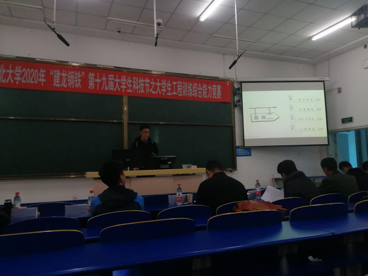 2020年10月17日,东北大学“建龙钢铁”第十九届大学生科技节之大学生工程训练综合能力竞赛于上午八点半在大成教学馆103拉开帷幕,此次竞赛由创新创业学院主办,机械工程与自动化学院、教务处工程训练中心承办。竞赛以“重在实践,鼓励创新”为指导思想,旨在加强大学生工程实践能力、创新意识和合作精神的培养,激发大学生进行科学研究与探索的兴趣,挖掘大学生的创新潜能与智慧,为优秀人才脱颖而出创造良好的条件,推动高等教育人才培养模式和实践教学的改革,不断提高人才培养的质量。
