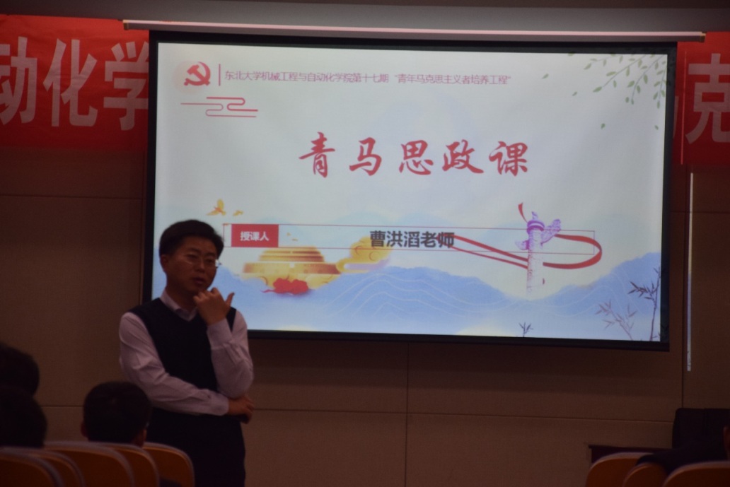 在第一课即将结束之时,曹老师再一次强调了马克思主义思想的重要性并建议学员查阅相关资料了解更多马克思主义的相关知识,以便能更透彻的明白马克思主义的可行性和正确性。同学们纷纷表示,通过这节课,更加坚定了马克思主义信仰,对党的精神有了更深的认识,对当代青年所肩负的时代使命认识更加清晰。