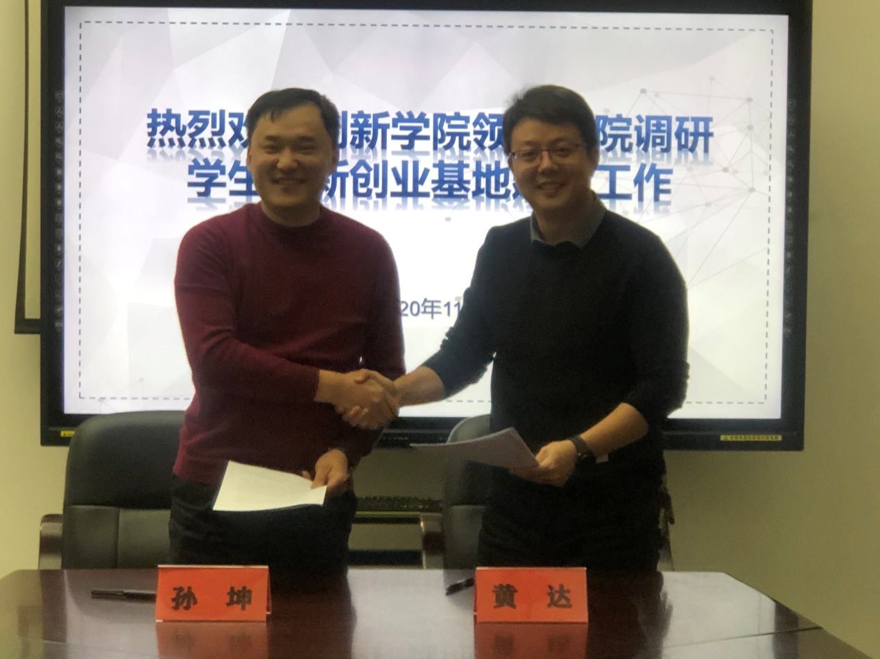 会议最后,创新创业学院副院长黄达,机械工程与自动化学院党委副书记兼副院长孙坤,代表两个学院签订了《机械工程与自动化学院创新创业基地建设协议书》。
