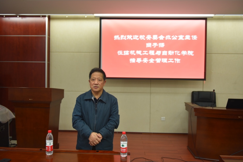 刘建军书记作了会前讲话,他热烈欢迎校安全管理部门此次对机械学院安全管理工作的指导和梳理,感谢校领导对学院近两年安全管理工作所取得成绩的肯定。同时强调,“安全管理工作”是永恒的主题,这两年学院安全环境有很大的改观,离不开学院上下全体教职工和学生们的共同努力,希望在校安委会等安全管理部门的指引和指导下,持续改进,做到更好。