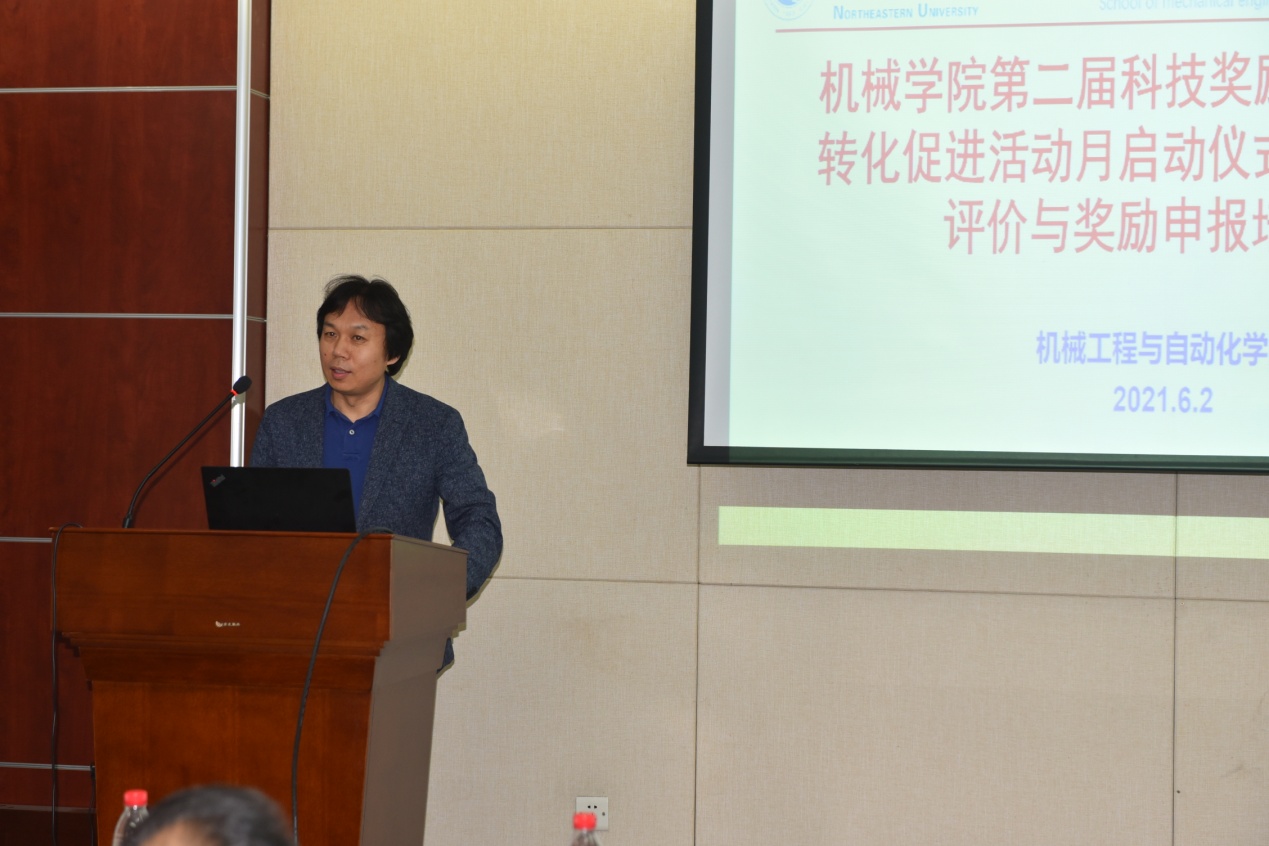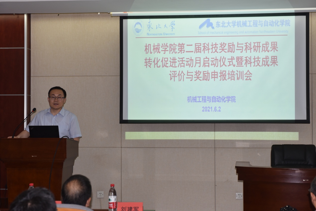 2021年6月2日,学院于机械楼513会议室举行了第二届科技奖励与科研成果转化促进活动月启动仪式暨科技成果评价与奖励申报培训会,邀请科研院副院长刘海波、科研院战略发展部部长李畅出席活动月启动仪式。作为活动月的第一项活动邀请中科合创(辽宁)科技服务有限公司总经理宋宇做培训讲座,学院领导班子及有相关基础和感兴趣的教师参加了本次活动。