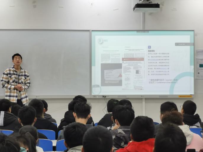 10月20日中午,机械学院集智点匠科创学业微讲座第一期在逸夫楼106顺利开展。本次讲座邀请到机械工程与自动化学院2018级优秀学长王硕朋为同学们分享零基础撰写学术论文以及科创方面的宝贵经验。