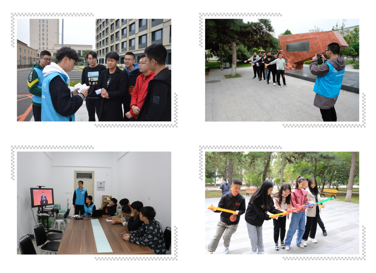 本次活动结合党的历史进程,将挑战划分为星火燎原、奋勇反抗、万众一心、革故鼎新、接续奋斗等五个篇章,每一篇章对应不同的时期,选手们进行相应的素质拓展和答题挑战。活动过程中,各队选手以题目回望建党百年历史,以仿拍追忆先辈光辉事迹,新机械楼前争分夺秒,汉卿会堂前红歌嘹亮,在素质拓展中精诚合作,在观影学习中汲取知识。