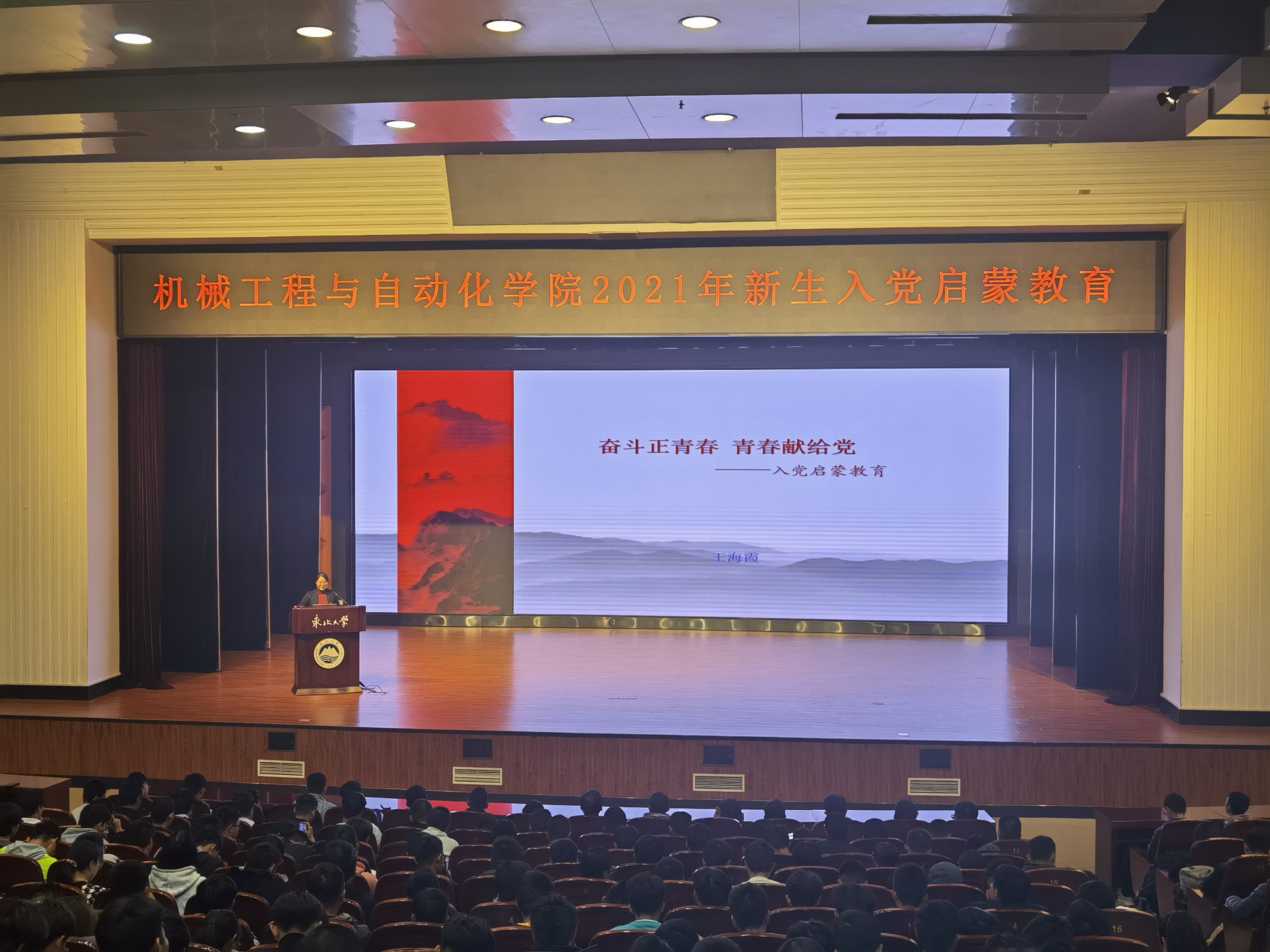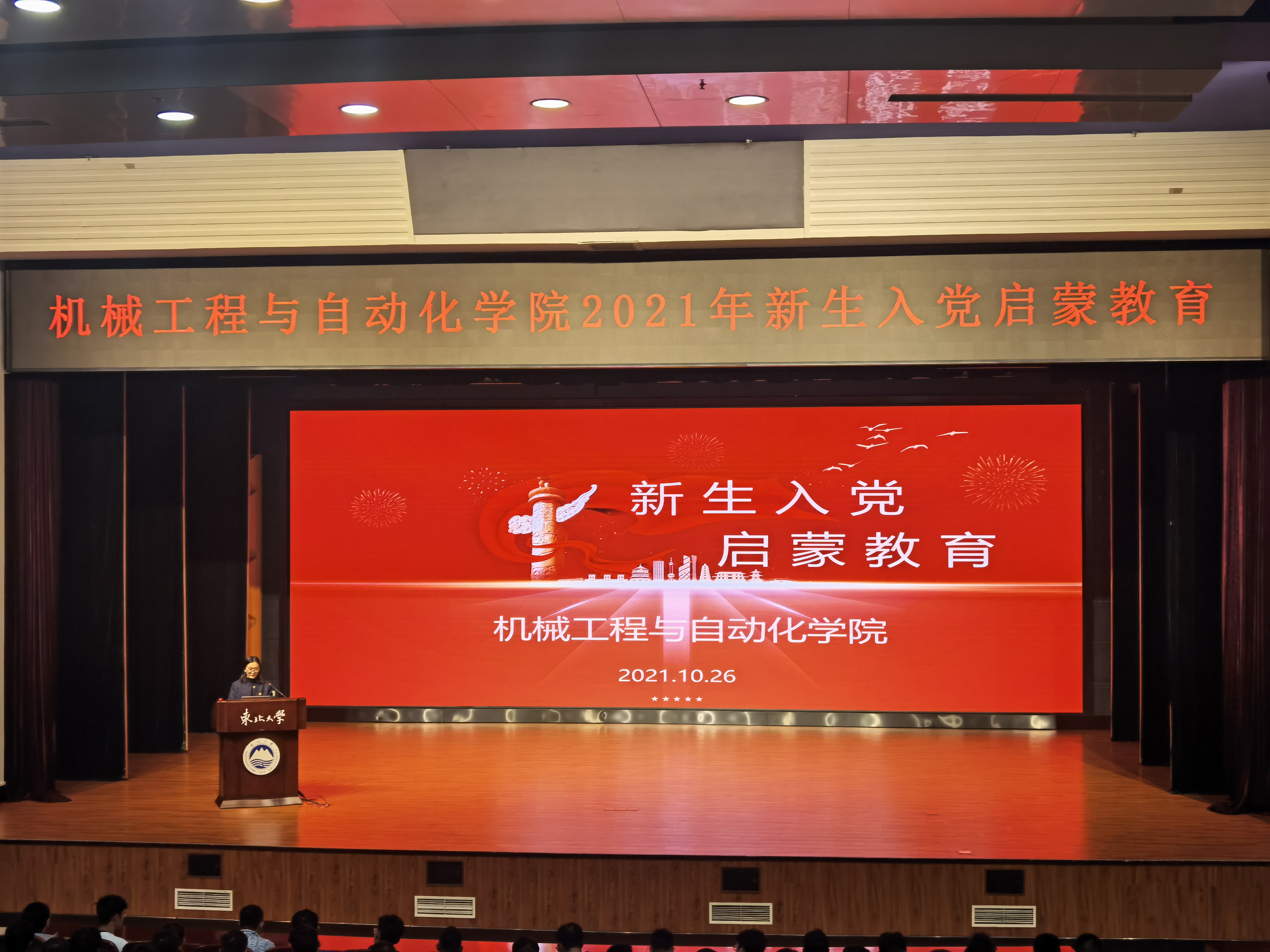 为帮助新生更好地了解党的基本知识,引导大家积极向党组织靠拢,机械学院于10月26日中午在汉卿会堂蔡冠深报告厅开展2021级新生入党启蒙教育活动。东北大学党委组织部组织员王海霞受邀担任主讲。机械学院党委副书记兼副院长孙坤及近500名师生代表参加活动,活动由组织员曲琳璐主持。