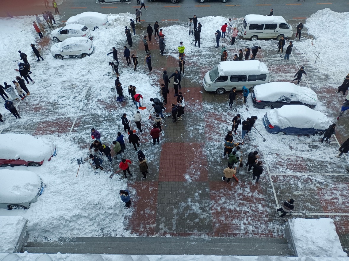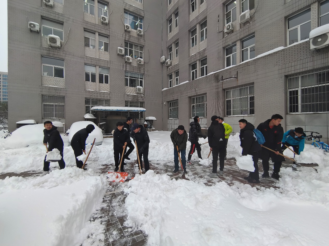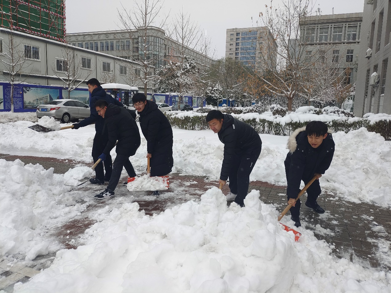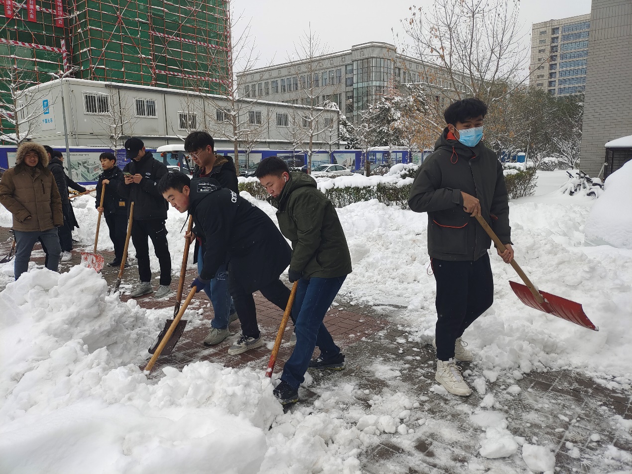 雪冷人暖,白雪皑皑,寒风凛冽,严寒与风霜冻僵了大家的双手,却无法消减大家心中的热情与温暖。本次扫雪除冰工作持续近两个小时,党员同志们凭借顽强的意志克服了寒冷的天气,争做先锋,一锹一铲不断移走厚厚的积雪,汇聚成一股股暖流驱散了冰冻严寒,直至清理出方便出行的路面。