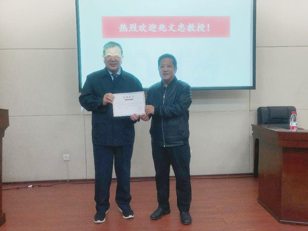 机械工程与自动化学院党委书记刘建军、党委副书记兼副院长孙坤以及2021级新生辅导员到场参加本次活动。报告开始前,兆文忠教授向学院新生赠予自编教材《焊接结构抗疲劳设计的理论与方法》,学院党委书记刘建军代表学院接受赠予并为其颁发捐赠证书。