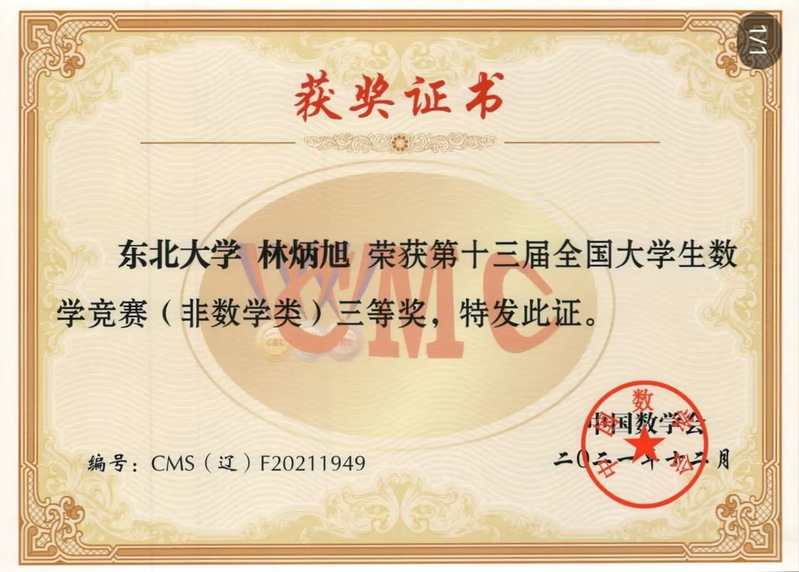 图7 智能2002团支部林炳旭同学科研竞赛获奖