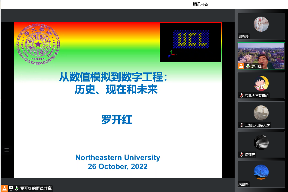 10月26日下午,机械工程与自动化学院“迎接东北大学建校100周年、机械学院建院30周年系列活动之学术报告会”第四场以线上的方式举行,姜曦灼教授邀请了英国伦敦大学学院罗开红院士作学术报告,报告题目为“从数值模拟到数字工程:历史、现在和未来”,学院相关专业领域和感兴趣的教师及学生参加了本次学术活动。