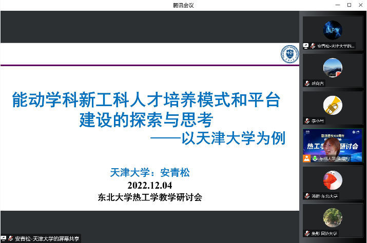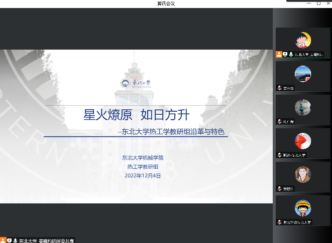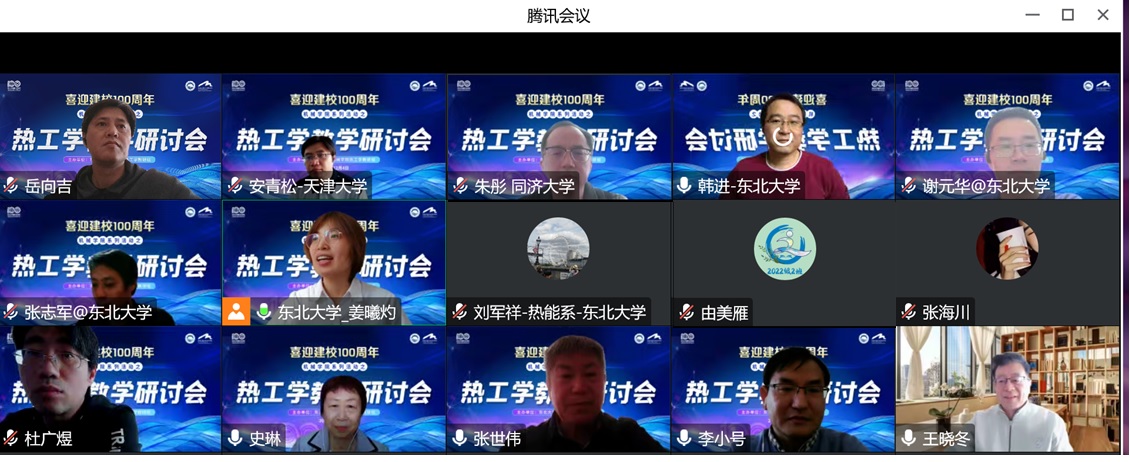 2022年12月4日,东北大学喜迎建校100周年机械学院系列活动之“热工学教学研讨会”在线胜利召开。本次研讨会由东北大学机械学院热工学教研组主办,会议筹备期间得到了东北大学机械学院、沈阳市内外兄弟院校热工学教研组的大力支持。
