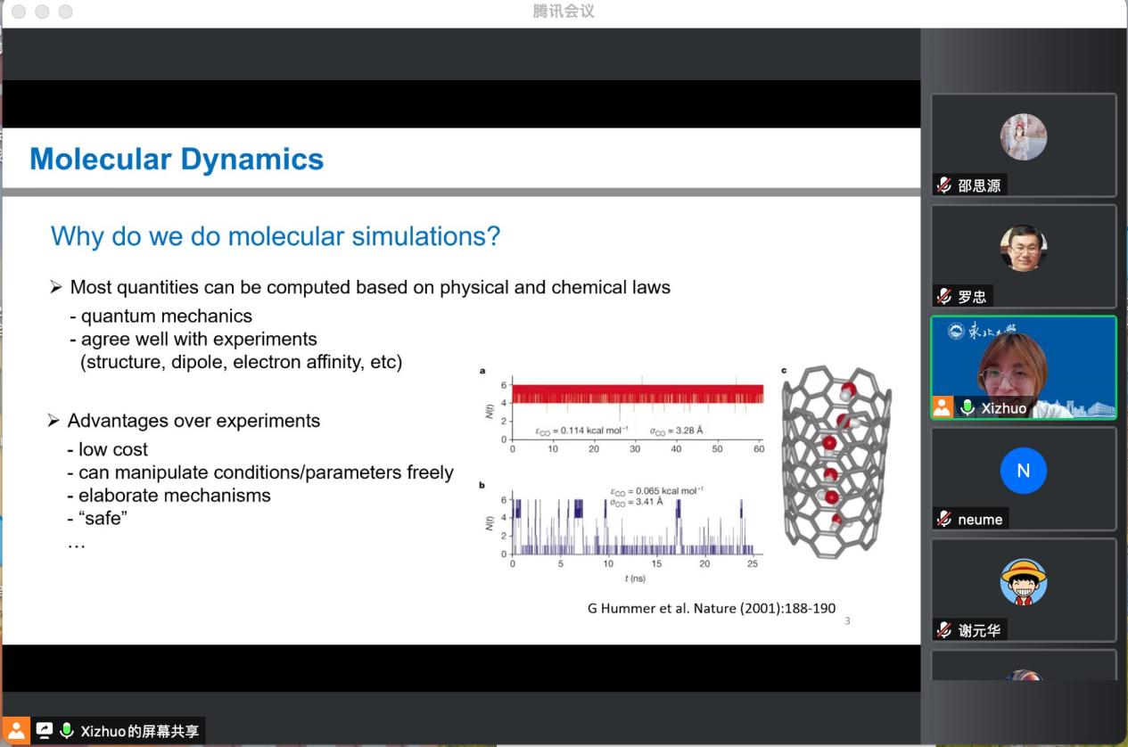 11月30日下午,机械工程与自动化学院“迎接东北大学建校100周年、机械学院建院30周年系列活动之学术报告会”第九场在线上举行,学院姜曦灼教授作学术报告,报告题目为“分子动力学的前沿与应用”,学院相关专业领域和感兴趣的教师及学生参加了本次学术活动。