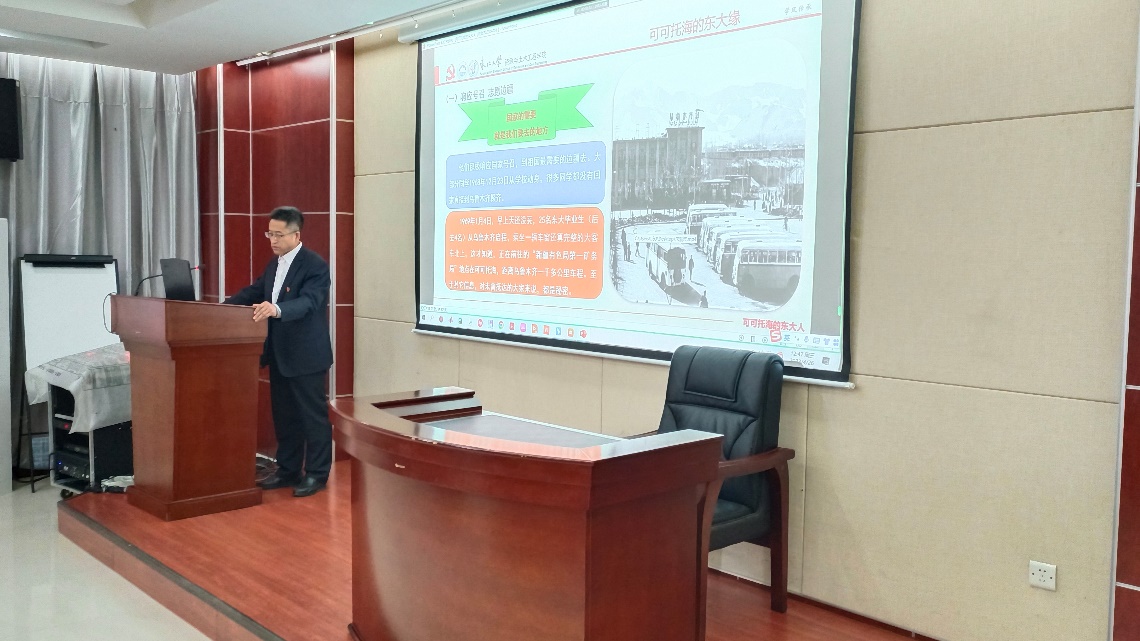 4月26日,机械学院2023年上半年入党积极分子培训班第三课在新机械楼513开课。本次课程由资土学院党委书记艾国生主讲,课程主题为《可可托海的东大人》,全体参训积极分子参加此次课程学习。
