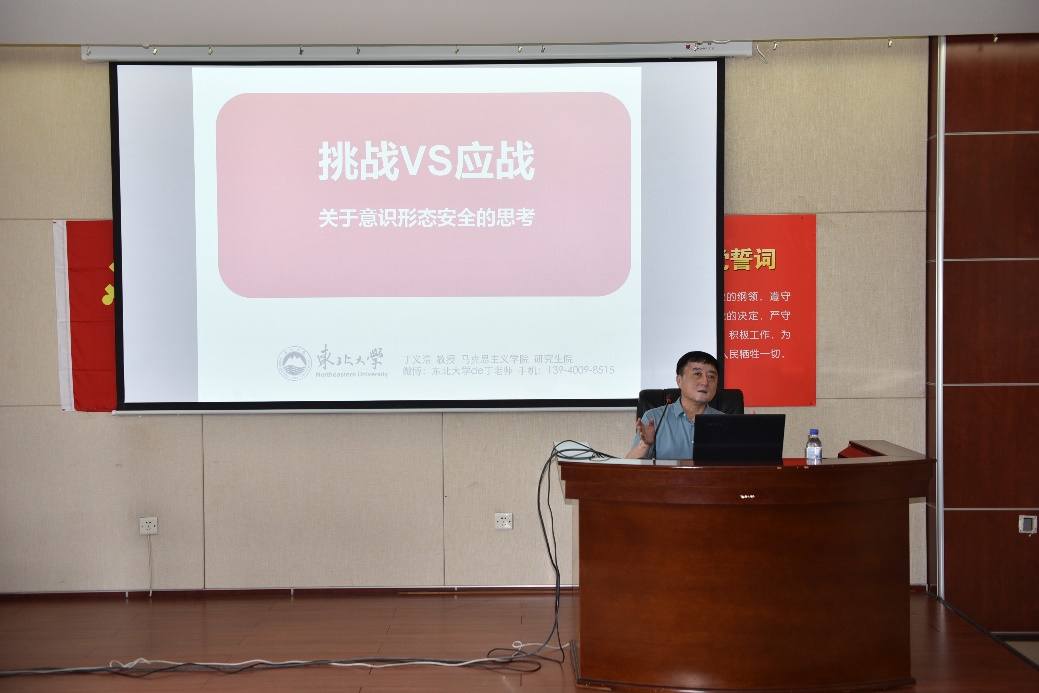 丁义浩从什么是意识形态?意识形态领域形势分析,意识形态领域动向风险,提高意识形态工作能力等四个方面,将新时期意识形态工作,尤其是高校意识形态工作的识别、预防和化解向老师和同学做了详细的说明。
