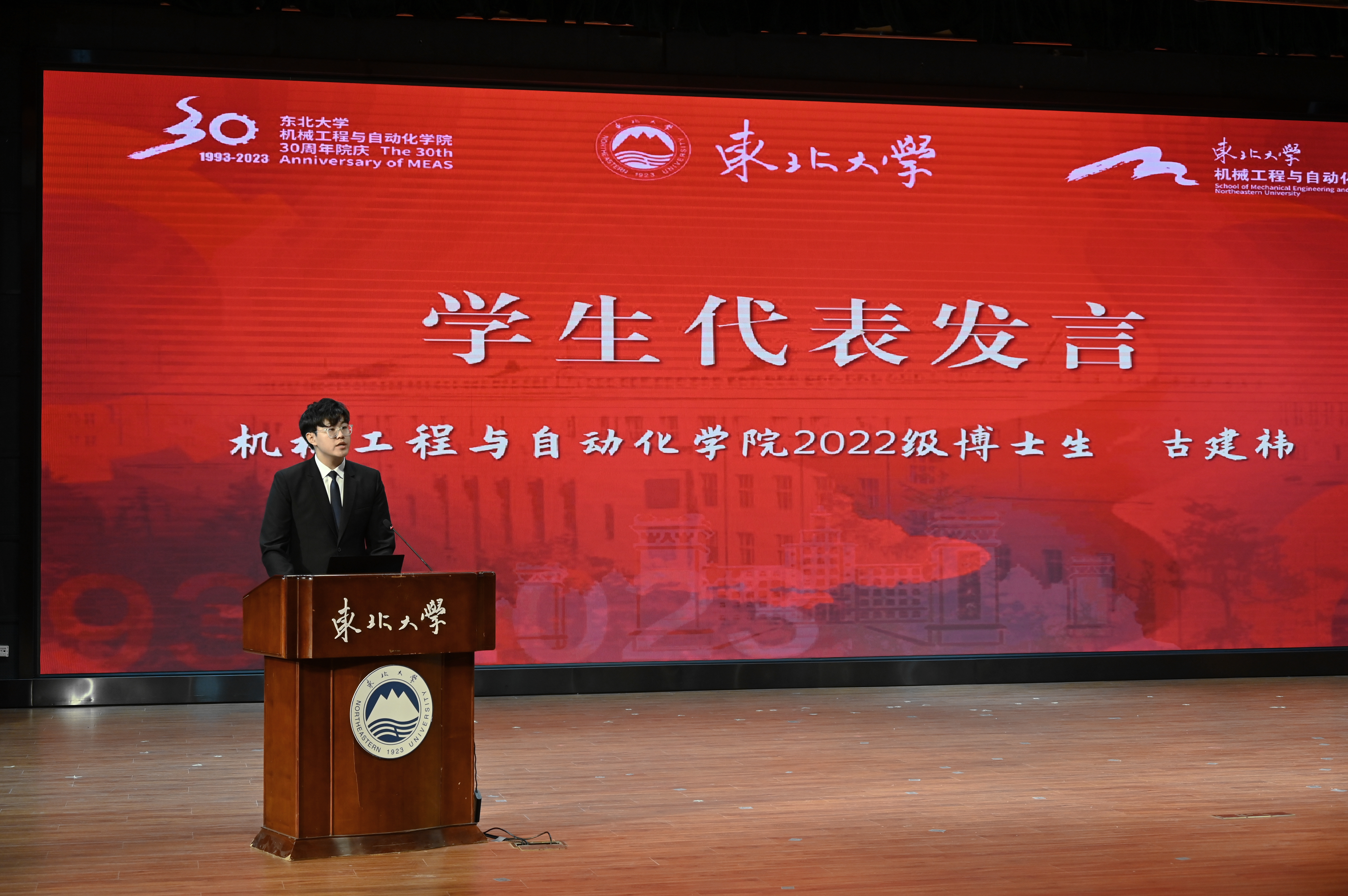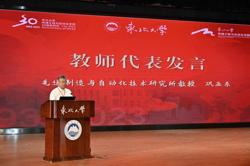 巩亚东作为教师代表发言,他表示东北大学机械学科历经近百年的发展,一代又一代机械人满怀创业豪情,在不同的岗位上为国家建设和发展做出重要贡献,为学校学院赢得广泛声誉。回眸学院整体建设快速发展的这30年,这其中离不开全院师生的共同努力。面向新时代,机械学院全体教师也将继续牢记为党育人、为国育才的初心与使命,坚持知识传授与价值引领‘双塑造’,努力培养担当民族复兴大任的时代新人。