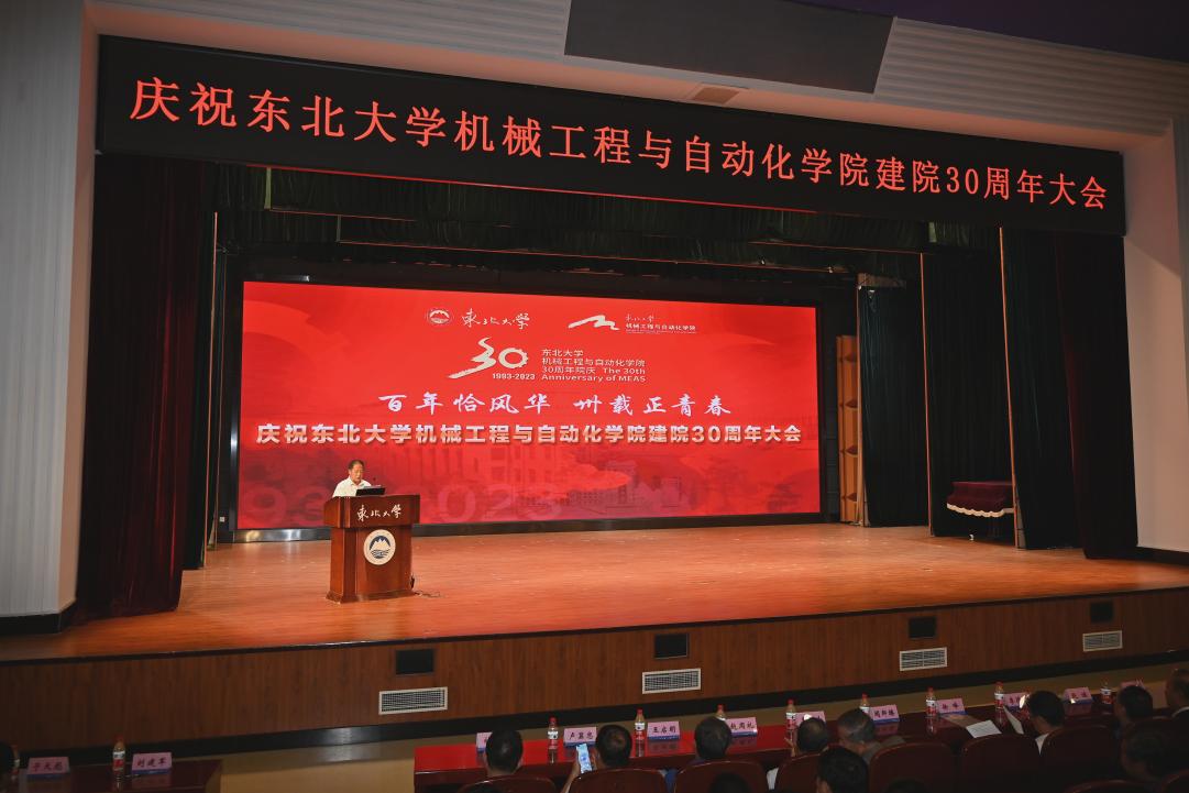 砥砺奋进三十载,百年荣光薪火传。2023年9月15日下午,机械工程与自动化学院建院30周年庆典大会在南湖校区汉卿会堂蔡冠深报告厅举行。东北大学党委常委、副校长徐峰,中国工程院院士闻邦椿,中国工程院院士李得天,东北大学原副校长王宛山,东北大学原校长赵继,机械工程与自动化学院执行院长于天彪、先进制造与自动化技术研究所教授巩亚东,东北大学81级机械系真空专业校友王志全,合作企业、兄弟高校以及院友代表等出席大会。大会由机械学院党委书记刘建军主持。