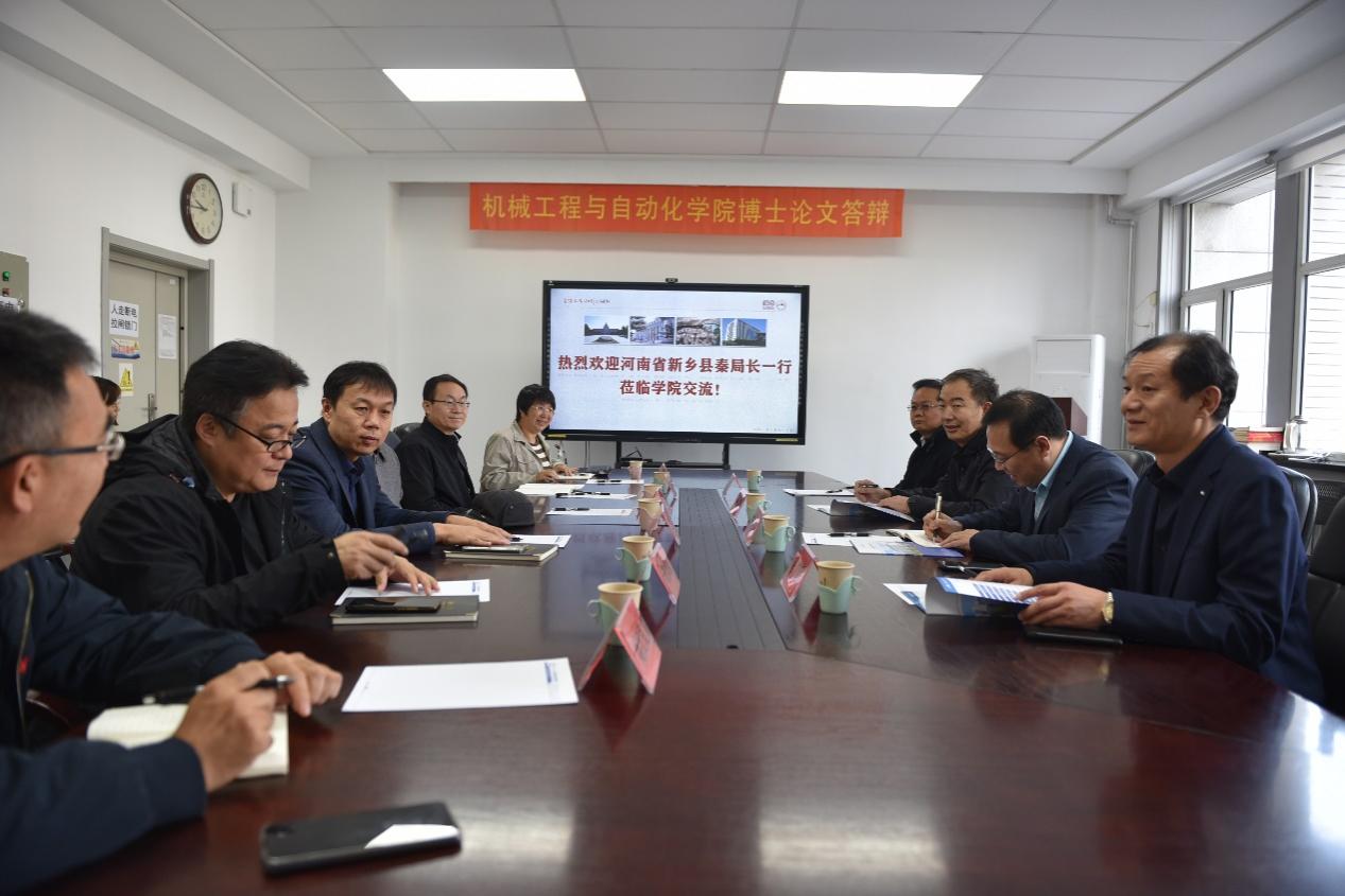11月1日上午,河南省新乡县市场管理局局长秦安飞一行4人到东北大学机械工程与自动化学院访问交流。学院执行院长于天彪,副院长孔祥伟、罗忠、田畅及学院教师代表等参加交流,田畅主持交流座谈会。