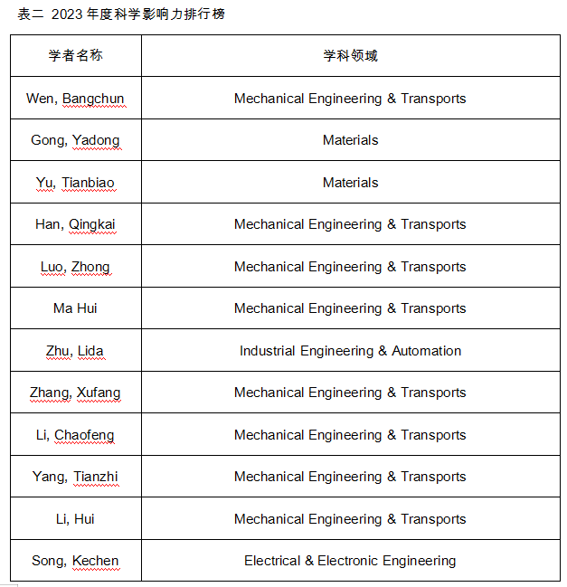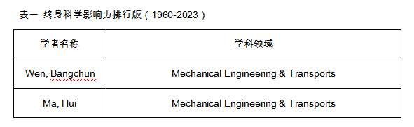 机械学院2位教师入选“终身科学影响力排行榜(1960—2023)”,12位教师入选“2023年度科学影响力排行榜”。其中,我院闻邦椿院士、马辉教授同时入选以上两个榜单。自2019年榜单发布以来,闻邦椿院士、马辉教授已连续5年入选“年度科学影响力榜单”,连续2年入选“终身科学影响力榜单”。