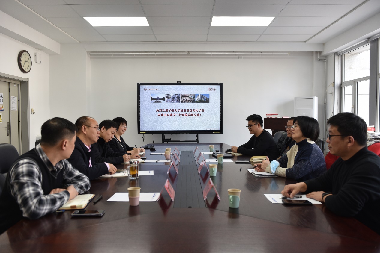 2024年3月7日,华侨大学机电及自动化学院党委书记黄宁、副院长林添良带队到东北大学机械工程与自动化学院访问交流。学院党委书记李海雄,执行院长于天彪,副院长田畅,党委副书记、副院长孙坤参加会议。