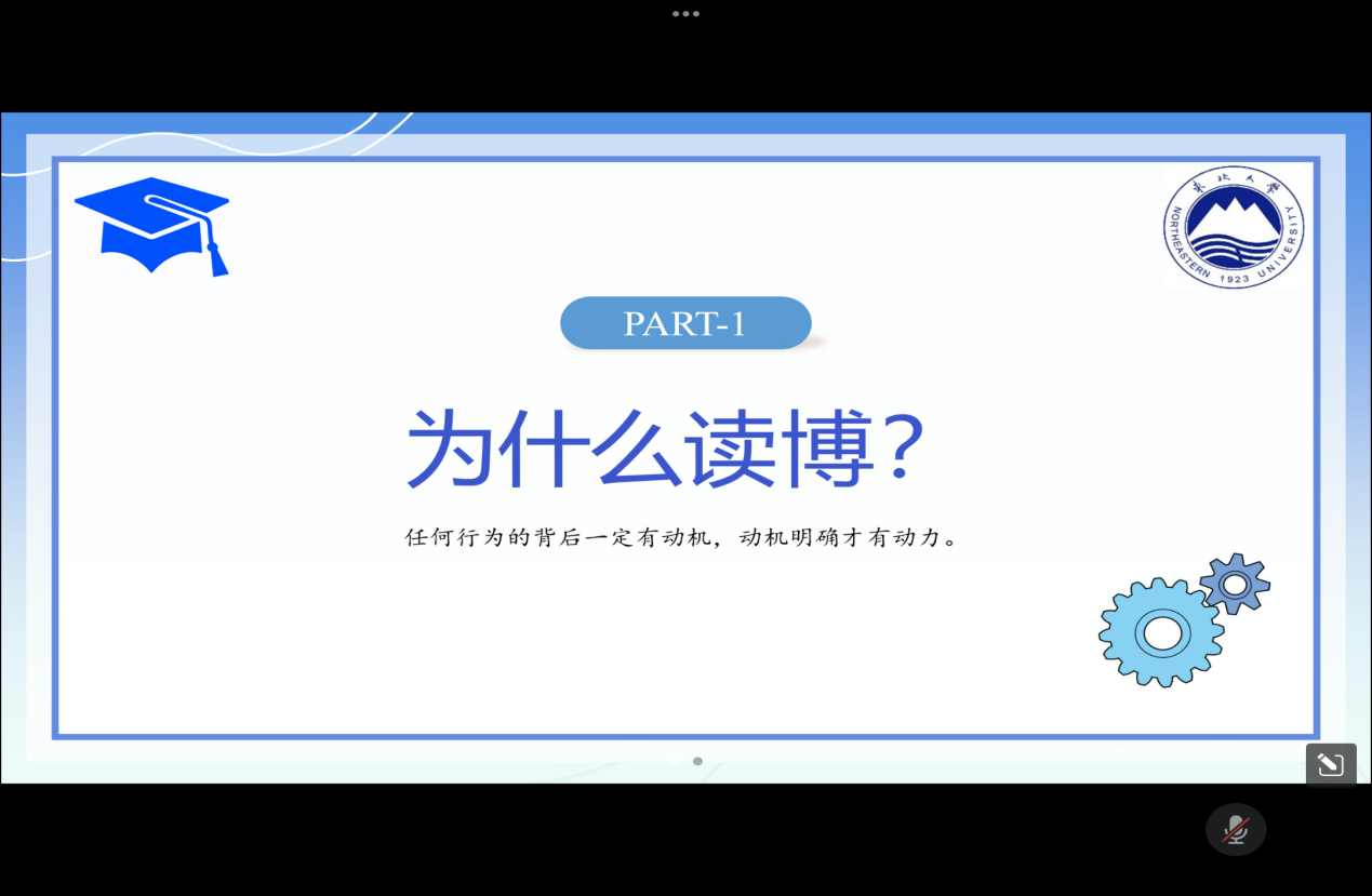 第二期主讲人陈鉴鹏,2022级博士研究生(硕博连读),在学期间以第一作者发布学术论文及多项软件著作权,曾获“沈阳市优秀研究生”等荣誉称号。在讲座过程中,陈鉴鹏分享了自己博士阶段的学习和研究经历,帮助低年级段研究生从早期开始规划自己的学术和职业道路,通过讲述硕士期间的发展路径、论文发表心得、如何选择感兴趣的研究方向等内容,激励了同学们对科学研究的热情和对学术探索的渴望。