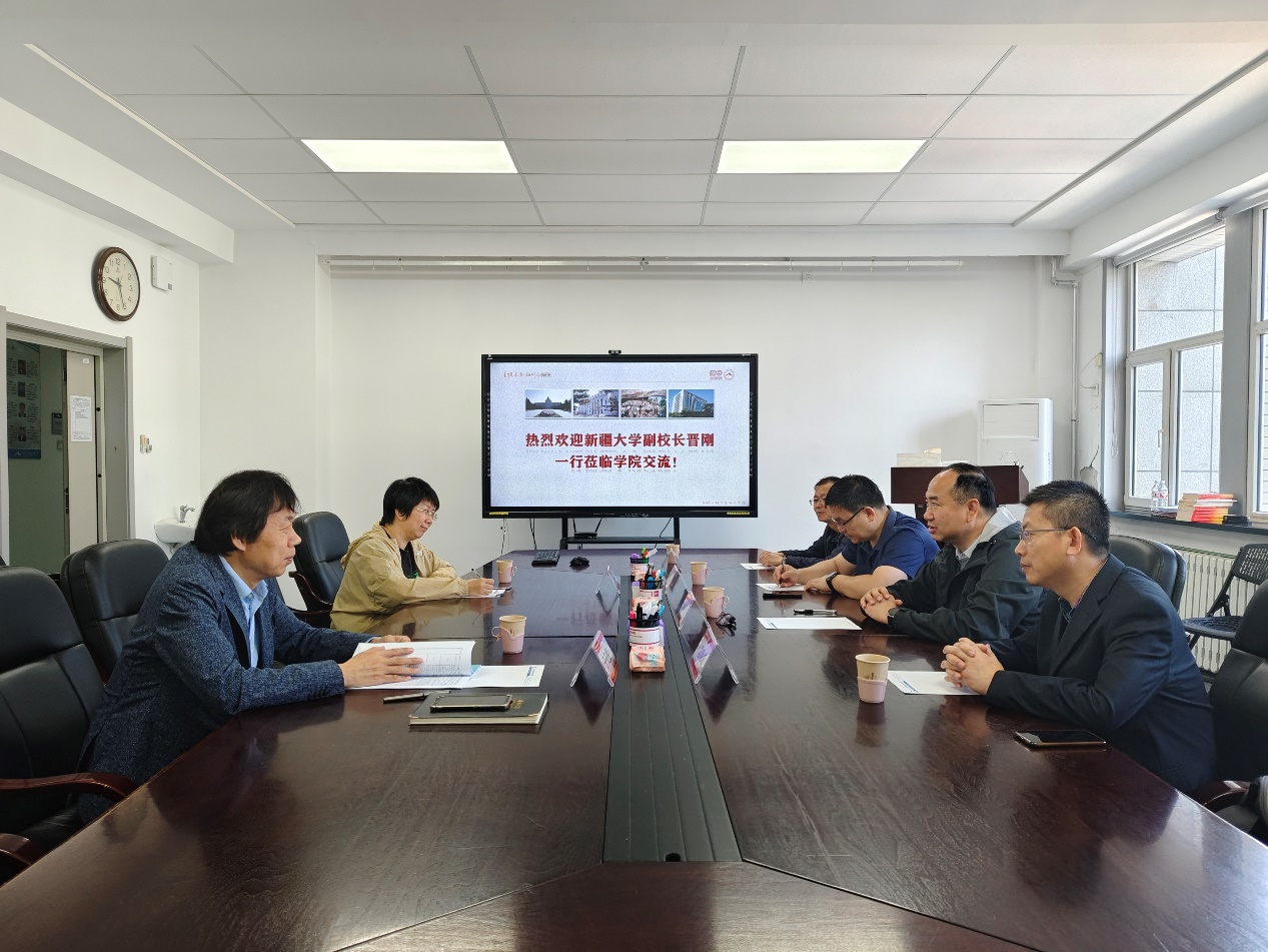 晋刚介绍了新疆大学的基本情况和人才政策,期待以新疆新能源等八大产业集群建设为契机,在引进人才、学科建设、科研项目等方面深化校院、院院合作,进一步加强双方在人才、学术和科研等方面的交流。
