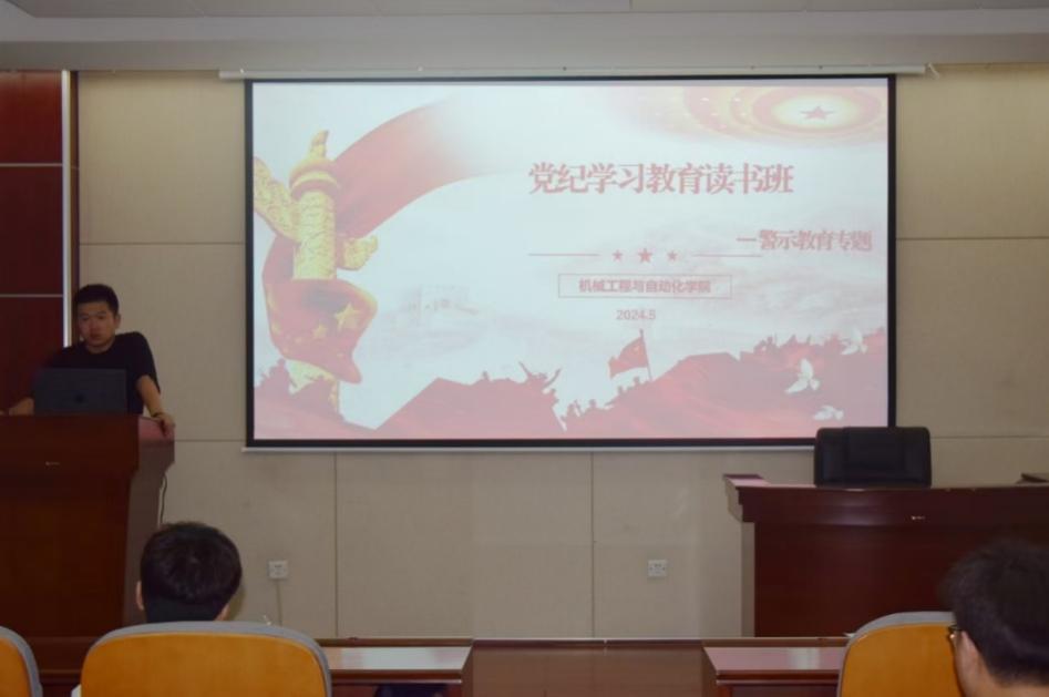 5月21日晚,机械学院学生党总支在机械楼513开展党纪学习教育读书班——警示教育专题学习活动,学院各党支部学生党员骨干参加了此次活动。