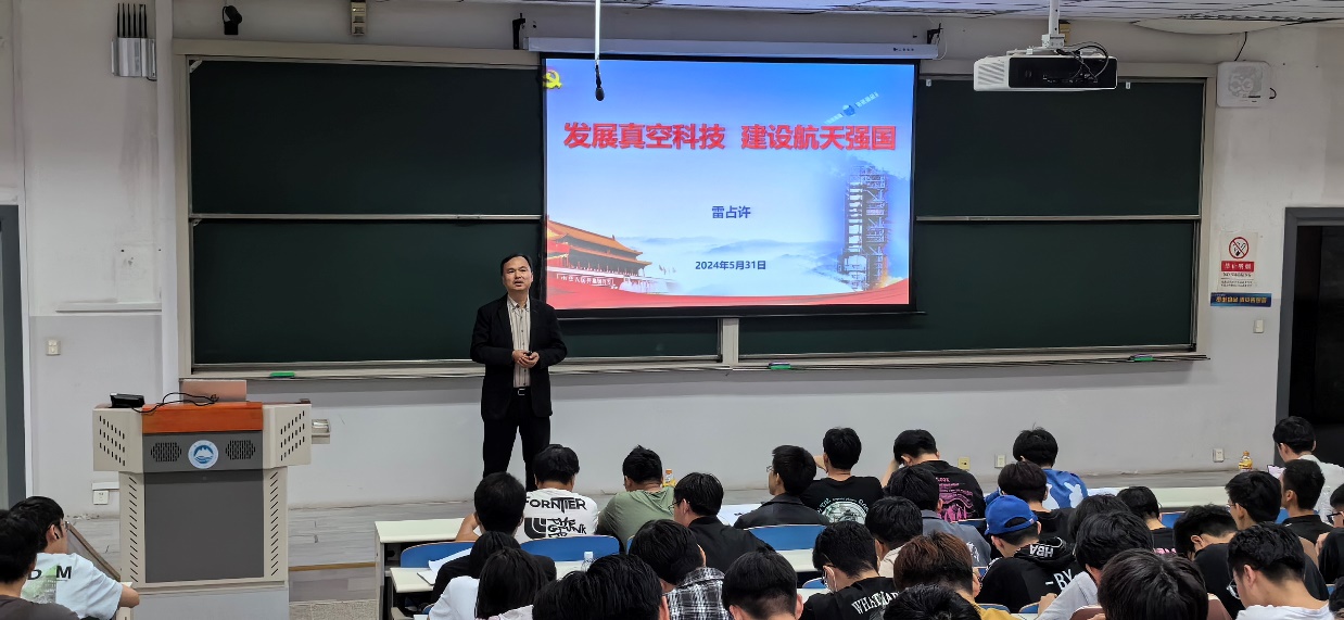 在报告中,雷占许特别强调了真空科学与航天技术的紧密联系,指出当前在真空计量、真空钎焊与热处理、空间环境模拟、空间站有效载荷真空系统、空间站在轨密封检漏等领域有很多实践应用。他在普及航天知识的同时,也鼓励新时代的大学生传承科学家精神和航天精神,结合自身的专业知识,脚踏实地,坚持科技创新,砥砺奋进,将个人理想与祖国的前途、民族的命运紧密相连,为真空科技的发展以及航天强国的建设贡献自己的力量。