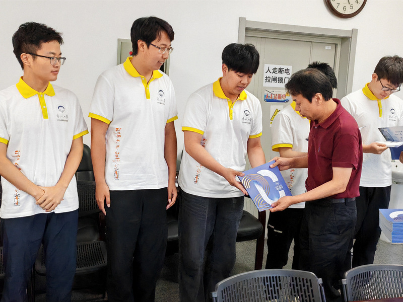 座谈会最后,于天彪为毕业生代表送上学院特别定制的毕业生纪念画册。