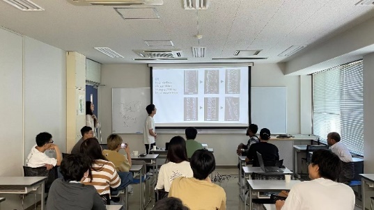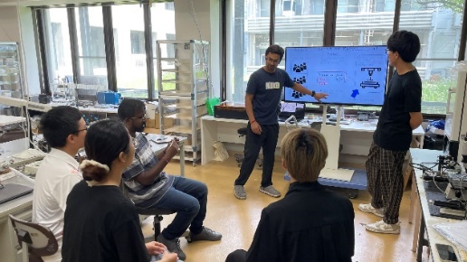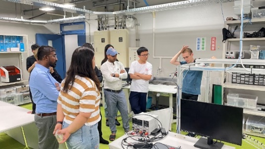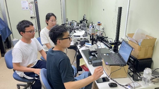 在交流的前几天里,团队参观了九州工业大学多个实验室,学习了laser cutting machine技术并自行设计样品,利用红外显微镜进行水蒸汽冷凝与水份蒸发的观察实验,并用短波红外显微镜观察头发。实验结束后,我校徐岱勇同学与另一位来自齐鲁工业大学的同学被团队推举进行最终实验成果发表和展示。